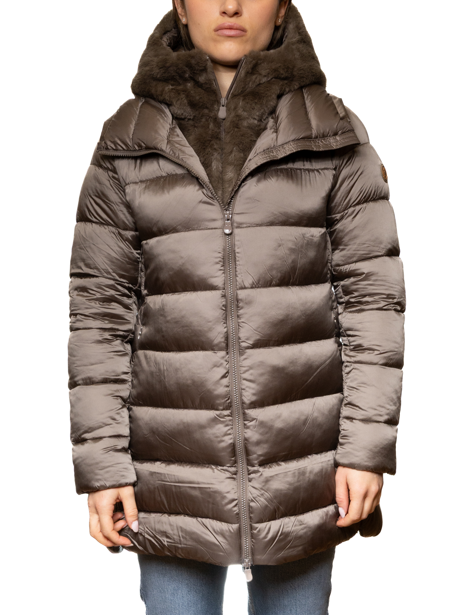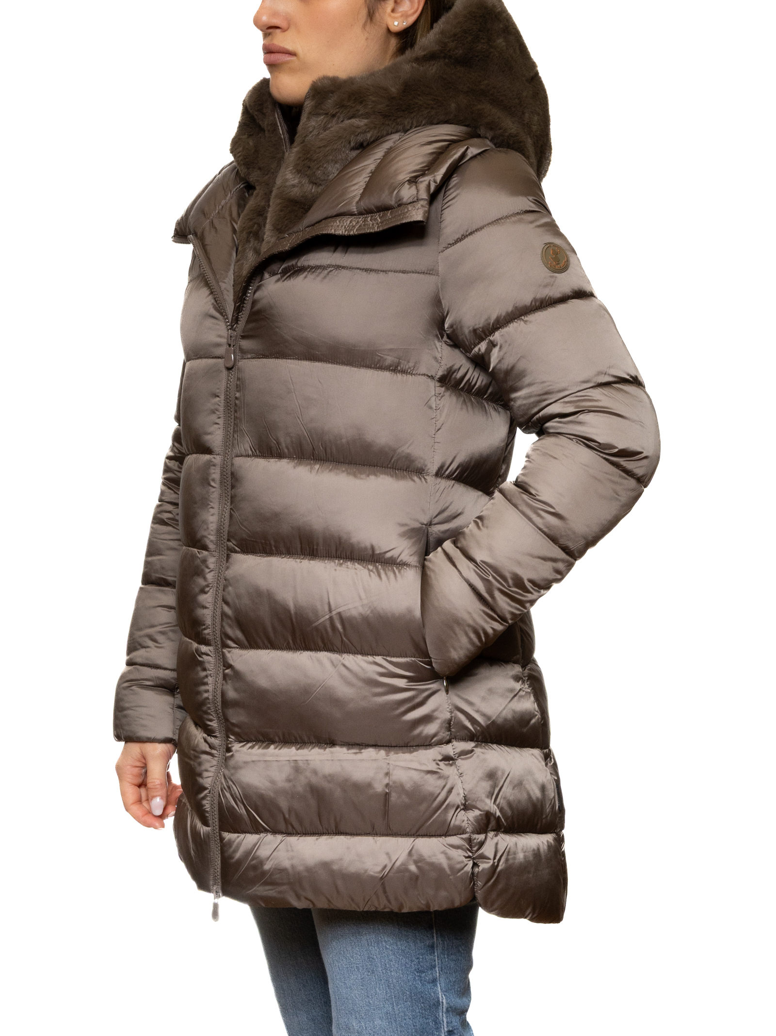 The Save The Duck long down jacket in dove gray is the perfect balance between elegance and functionality.
