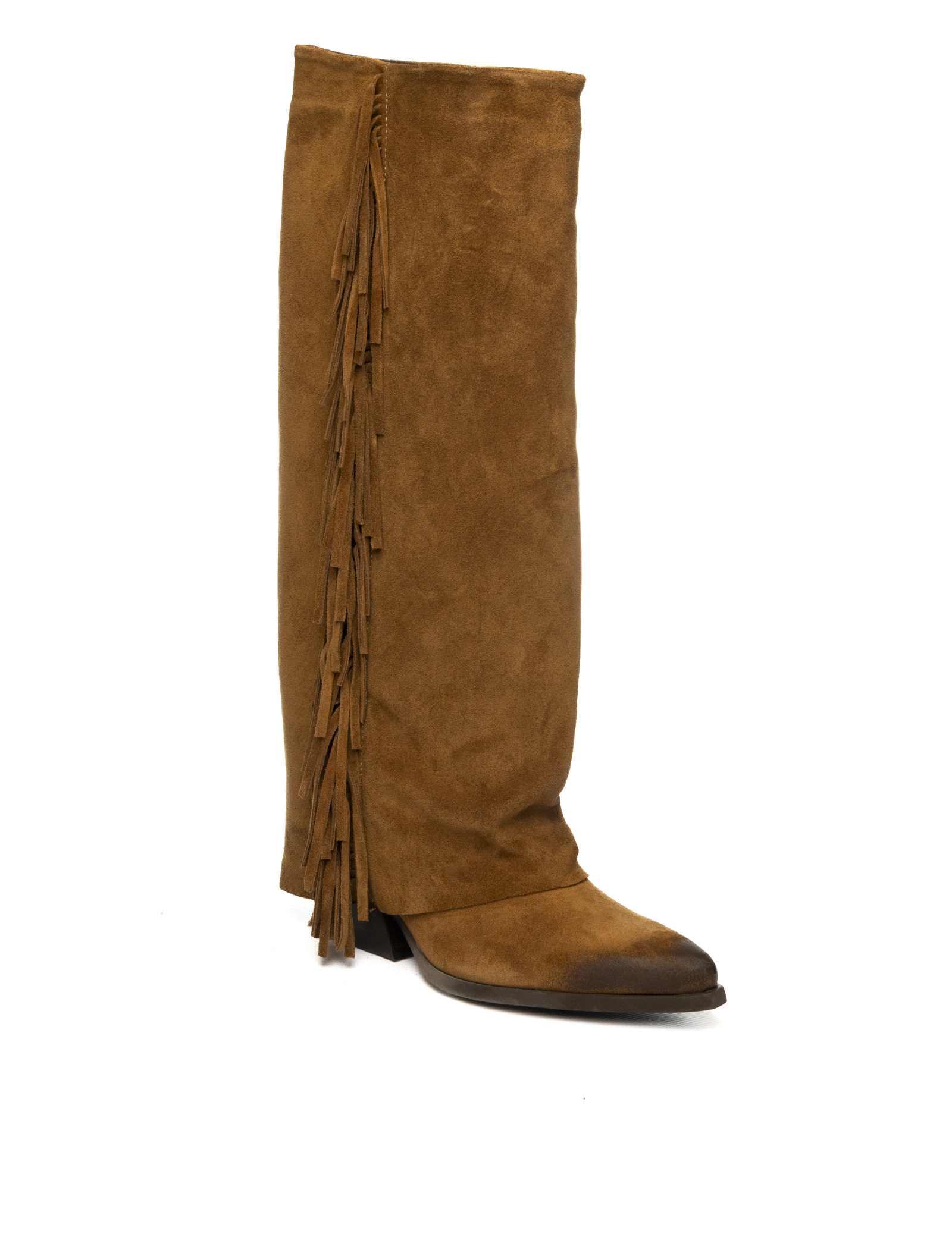 The clean, tall shaft is enriched with long side fringes that add movement and a boho-chic flair, ideal for enhancing both casual and more stylish outfits.