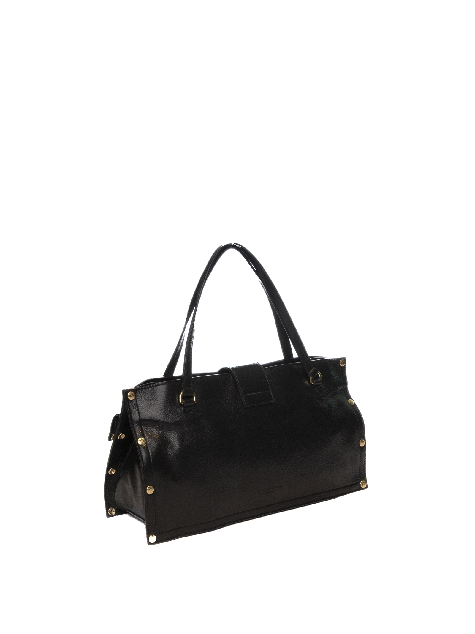 Crafted from high-quality leather, it features clean geometric lines and gold-tone metal hardware that enhances its elegance.