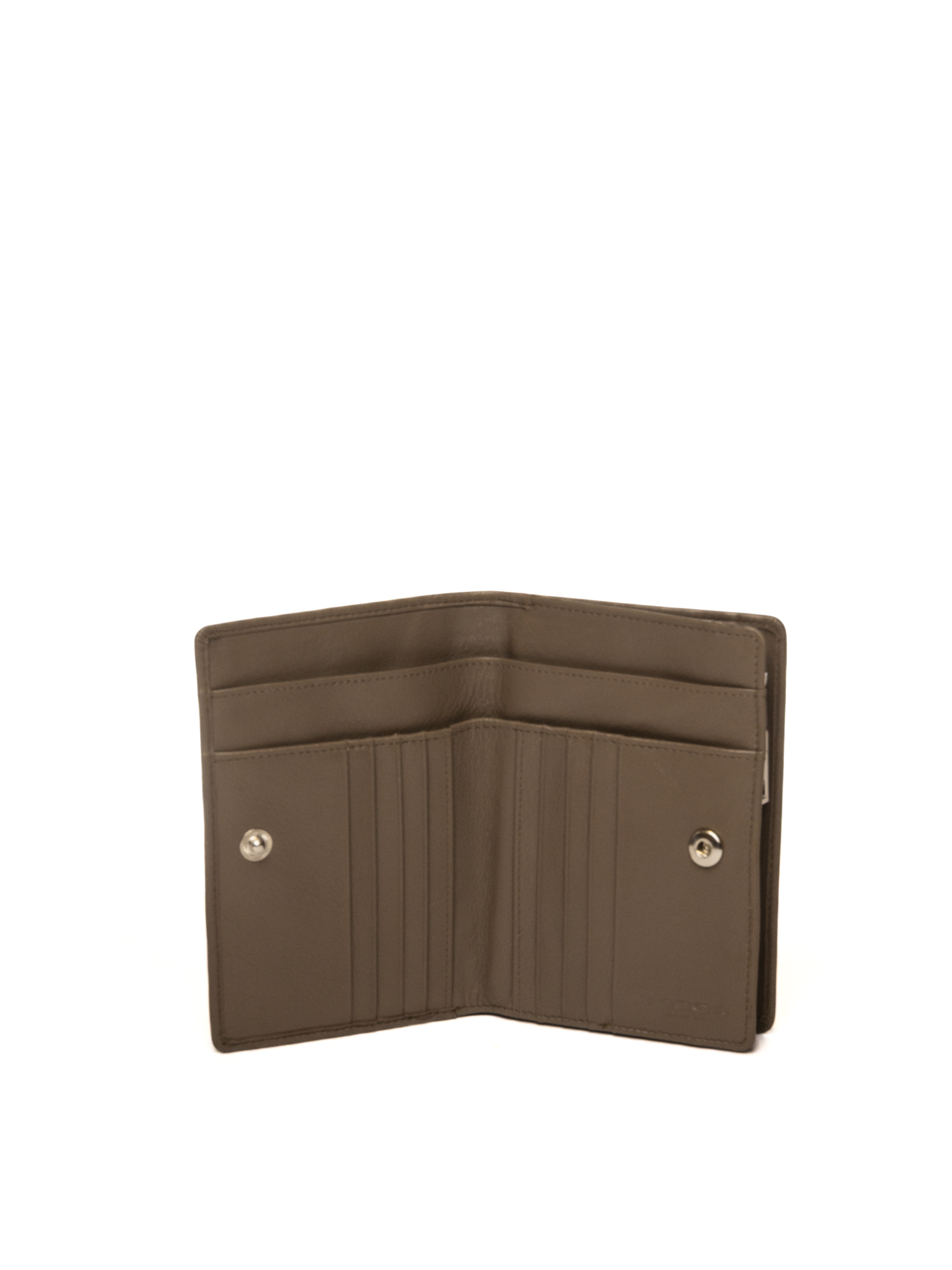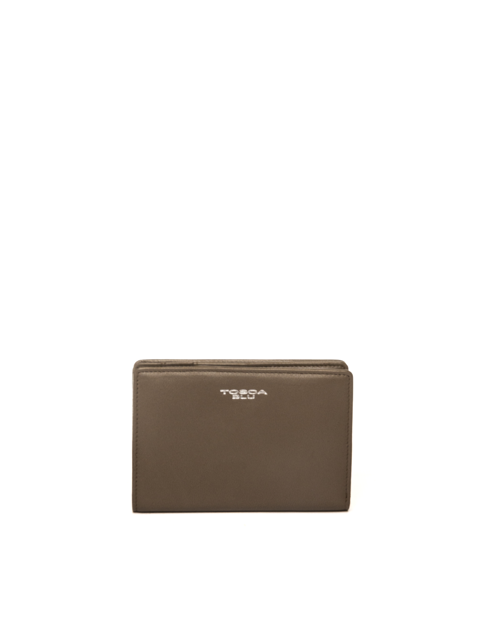 The Tosca Blu mud-colored leather wallet combines timeless elegance with modern practicality.