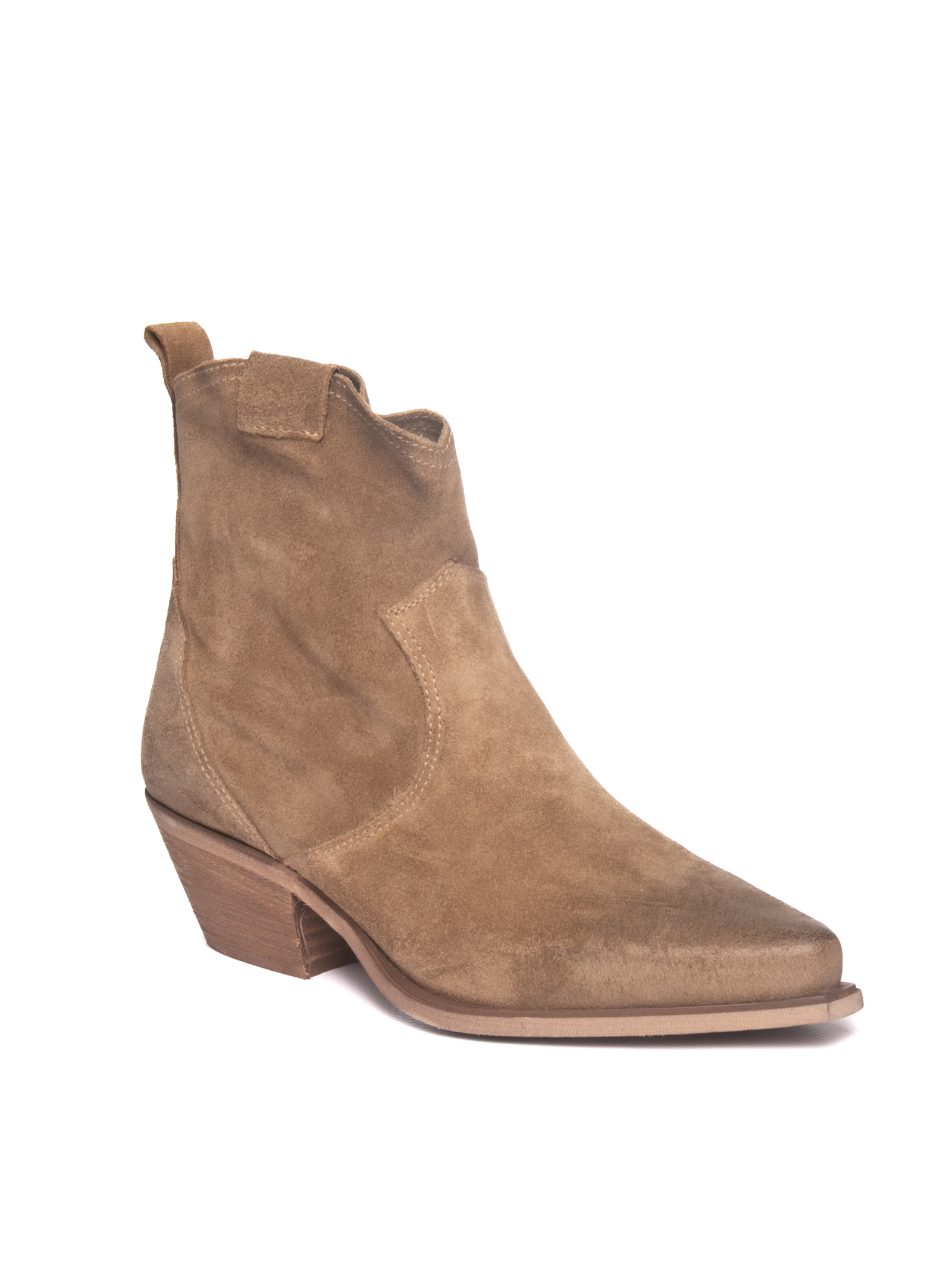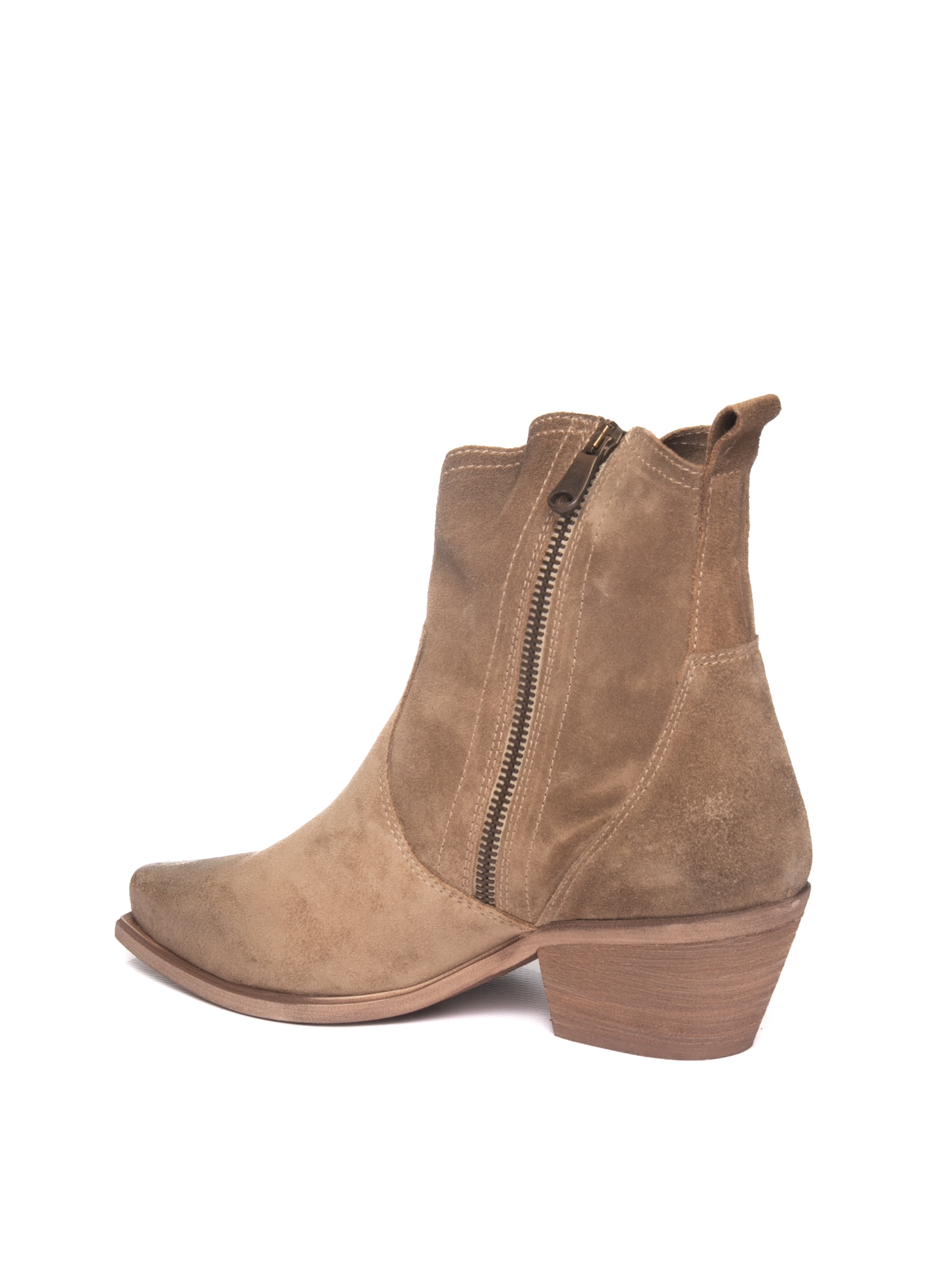 UP44 Western Ankle Boot (Model DX380 INGR-TORTORA), an Italian-made masterpiece that highlights pure design and the nobility of premium materials. This ankle boot is crafted from exquisite taupe suede, strictly selected for its velvety texture and soft hand-feel that ensures immediate comfort. Manufacturing excellence is showcased in the precision of the ornamental stitching and the expert treatment of the leather, designed to maintain its natural beauty and flexibility over time. Entirely Made in Italy, this model embodies superior quality where every detail from the tapered toe to the finely shaped wooden heel is the result of artisanal mastery for those who demand the best in both style and durability.