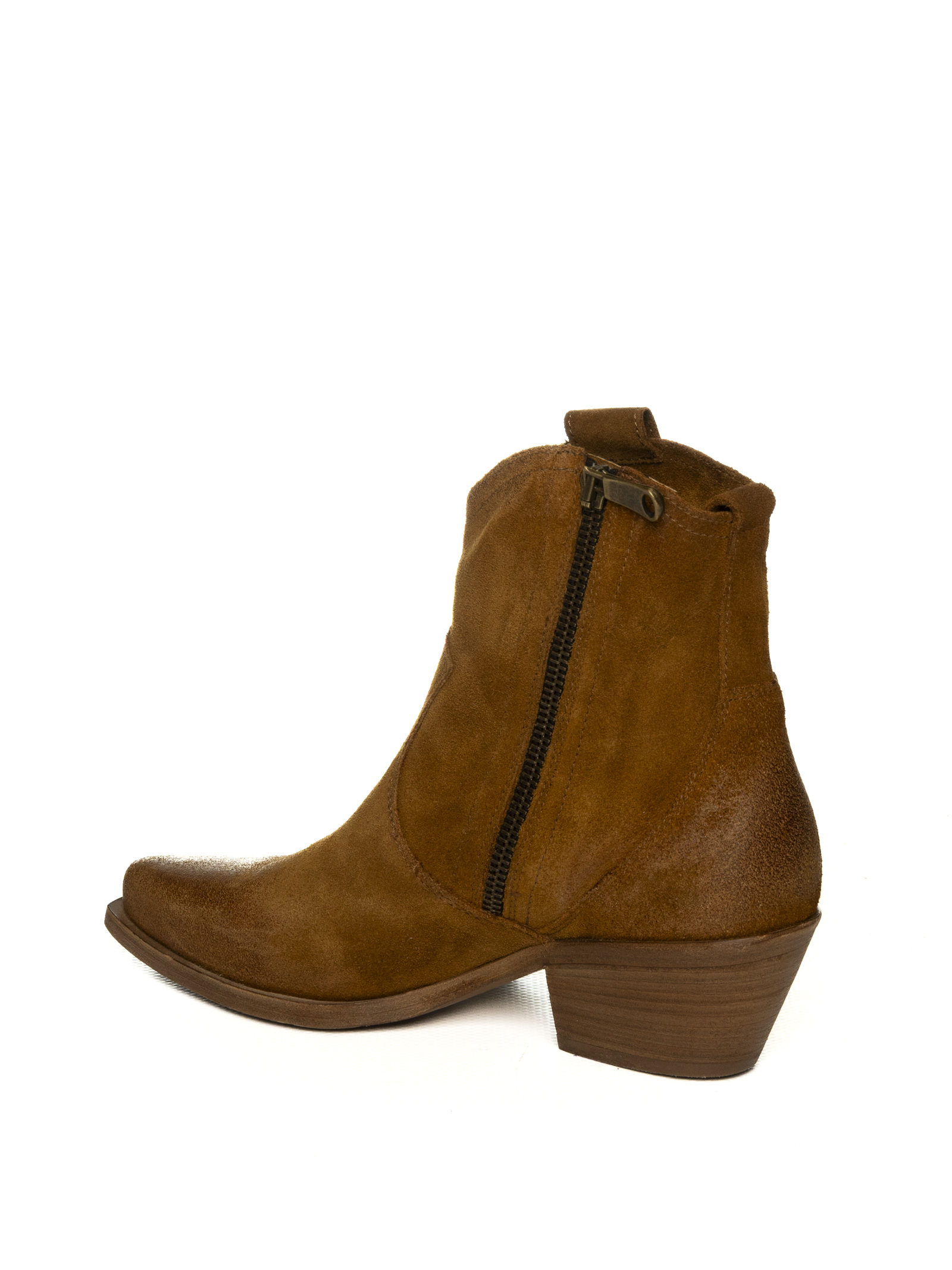 UP44 Western Ankle Boot (Model DX380 INGR-CUOIO), a masterpiece of Italian craftsmanship that celebrates the timeless beauty of premium suede leather. This boot stands out for its use of exquisite suede in a warm "cuoio" (tan) shade, carefully selected to offer a velvety texture and superior softness that naturally contours to the foot. The artisanal soul of this piece is evident in the precision-stitched detailing and the expertly shaped upper, reflecting a shoemaking mastery passed down through generations. Entirely Made in Italy, every detail of this ankle boot from the discreet side zipper to the finely finished wooden heel stands as a testament to uncompromising quality, designed for those who seek an authentic, durable product with a distinctive character.