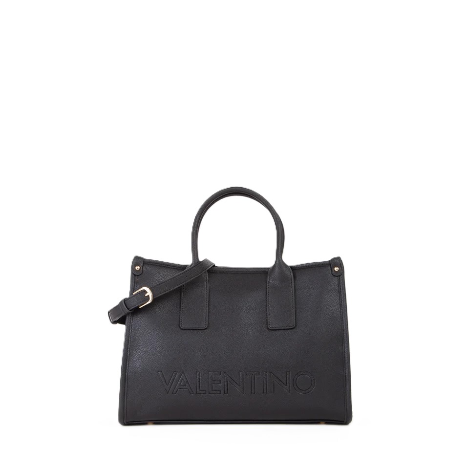 The Valentino shopper bag in black hammered synthetic leather is the ideal accessory for those seeking the perfect blend of elegance and practicality.