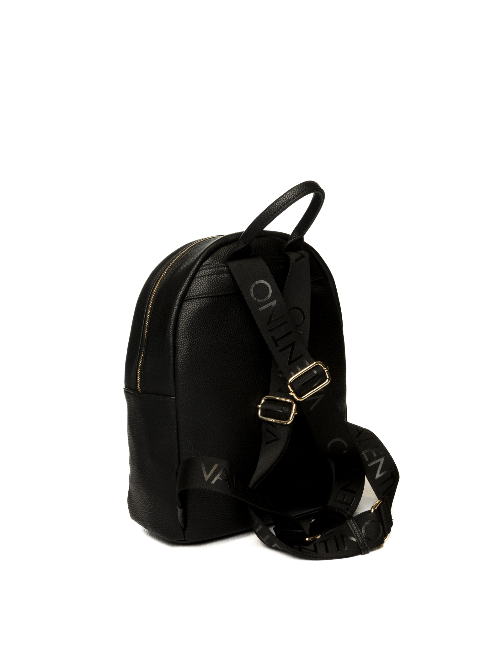 The Valentino backpack in black hammered synthetic leather is the ideal accessory for those seeking a modern and refined style without sacrificing practicality.