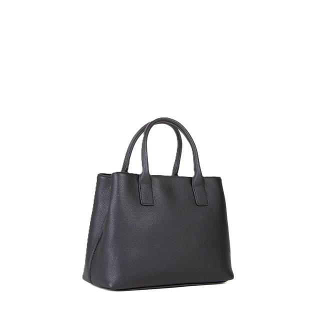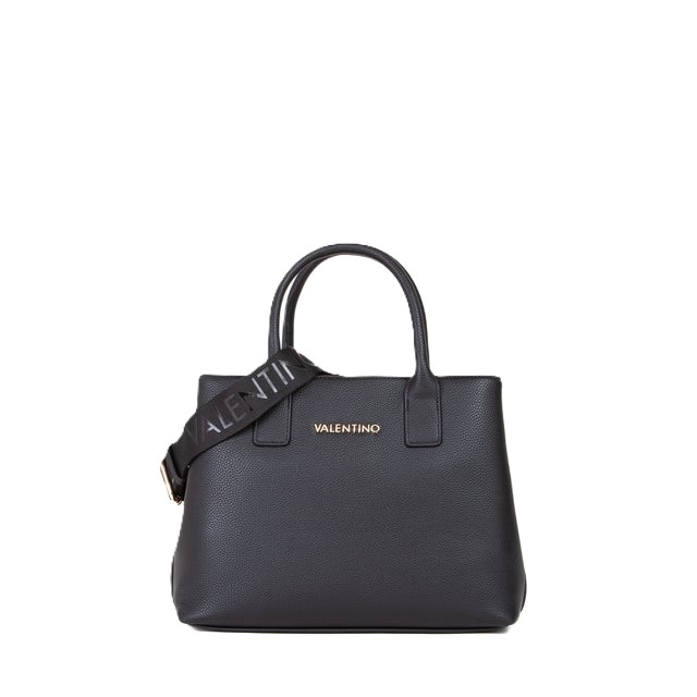 The Valentino handbag in black hammered synthetic leather is the ideal accessory for those seeking elegance and functionality in a single design.