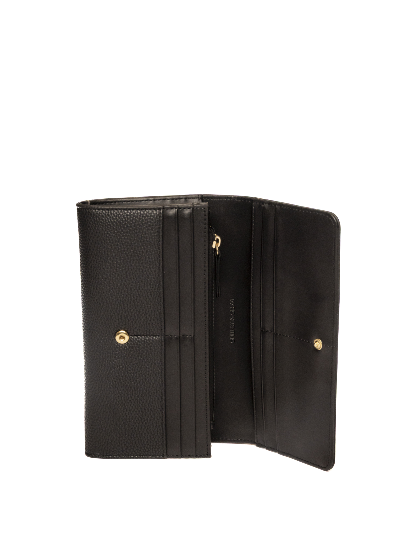 The Valentino wallet in black hammered synthetic leather is the perfect accessory for those who want to combine sophistication and practicality.