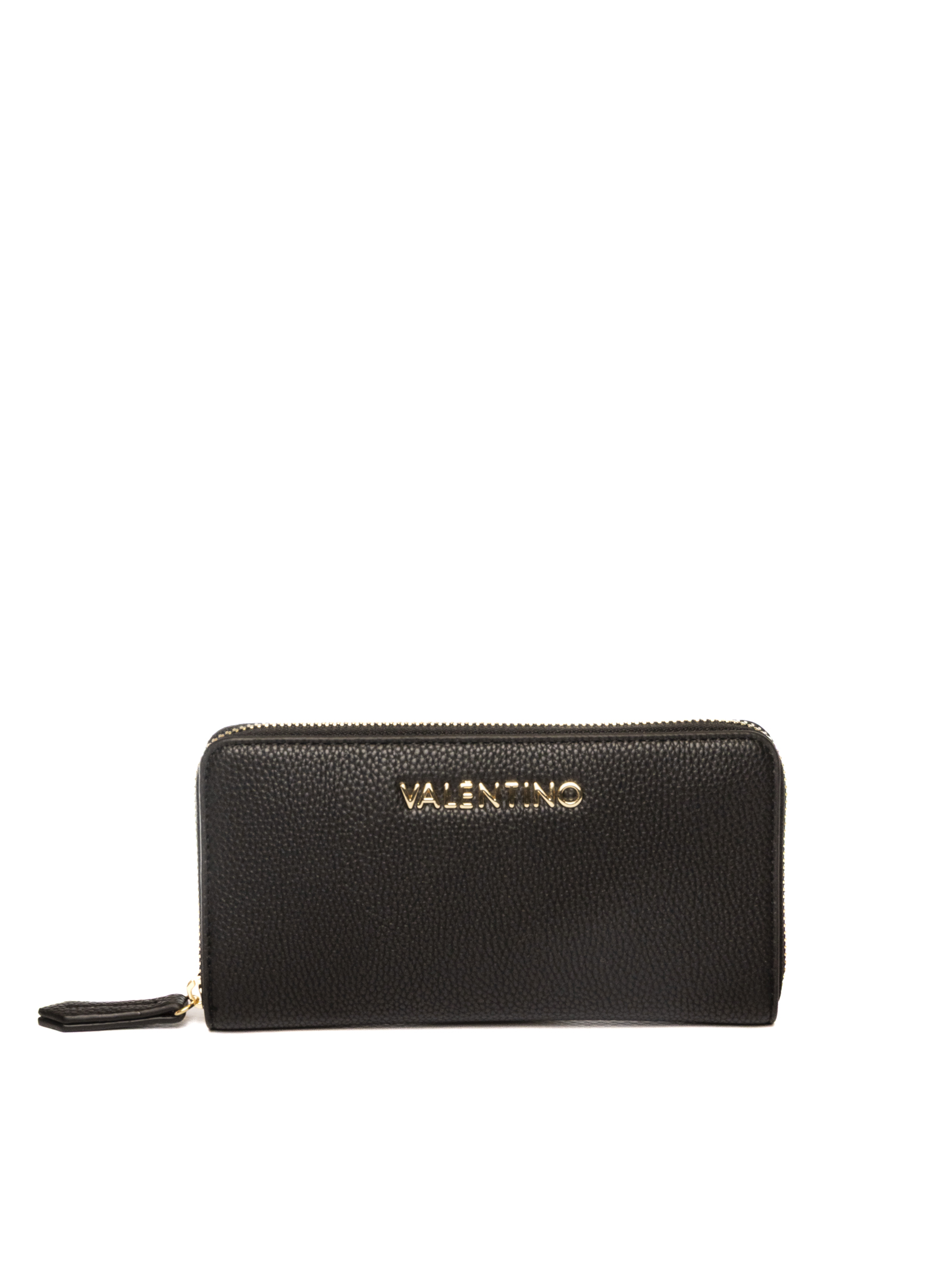 The Valentino wallet in black hammered synthetic leather is the ideal accessory for those who love elegant and timeless style.