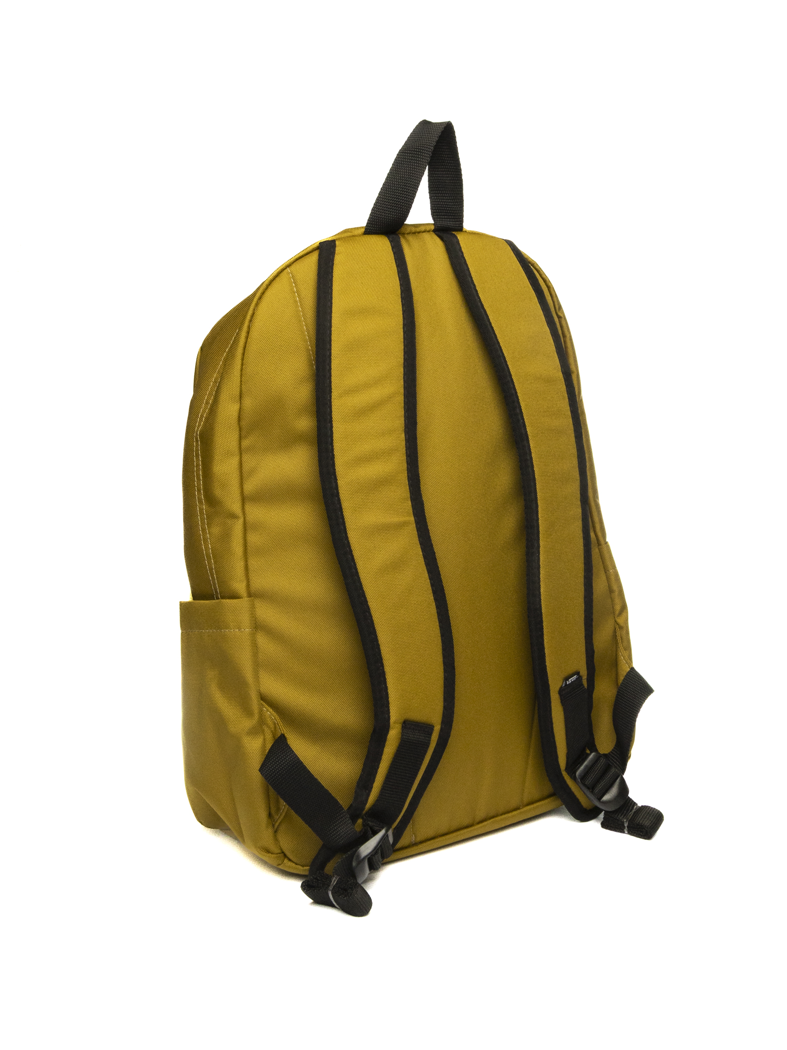 Recycled polyester backpack. Zip closure. Contrasting handle. Adjustable shoulder straps. Interior pocket. Laptop sleeve. Side water bottle pocket. Rectangular logo and "Off the Wall" branding on the front.