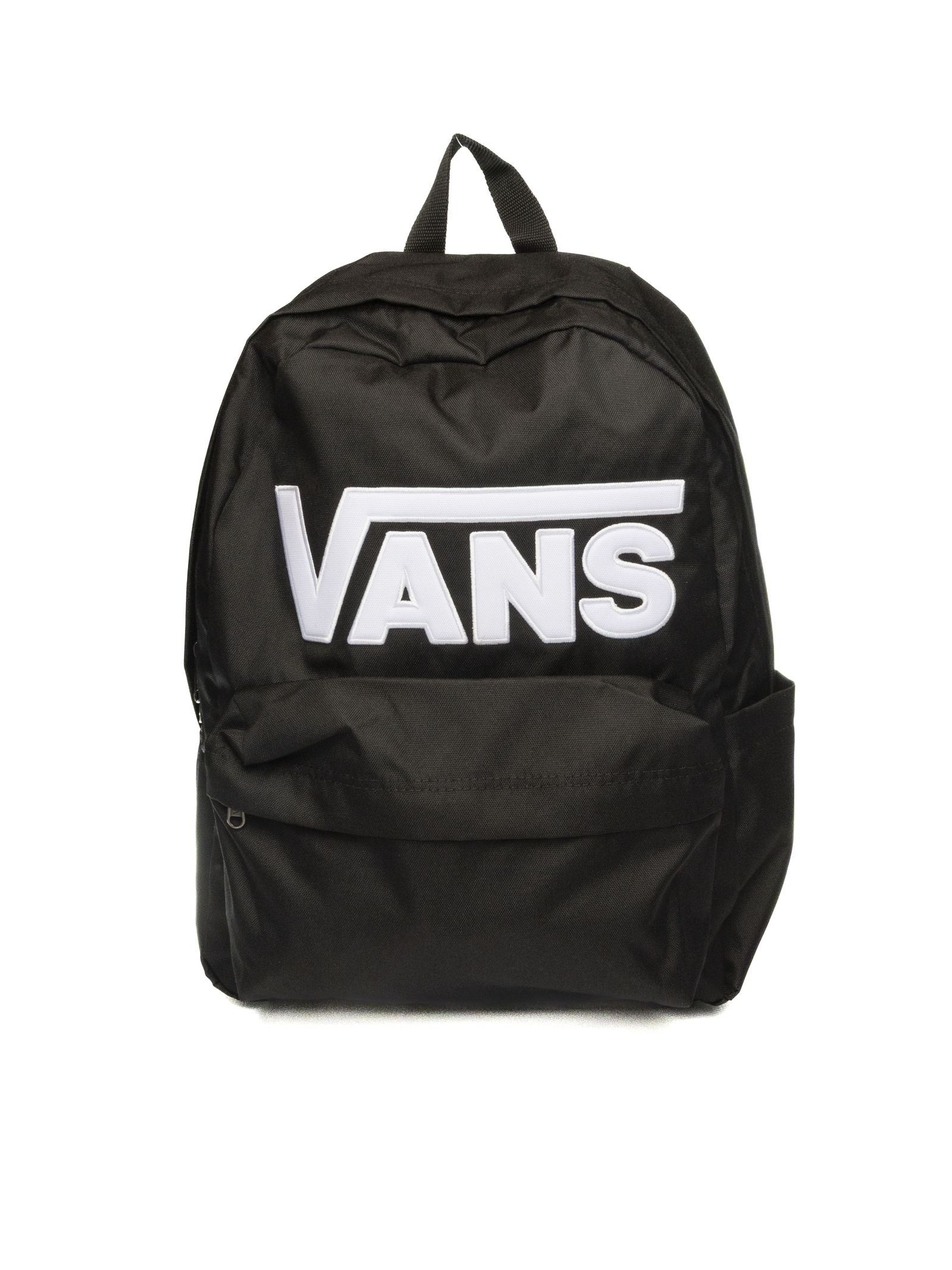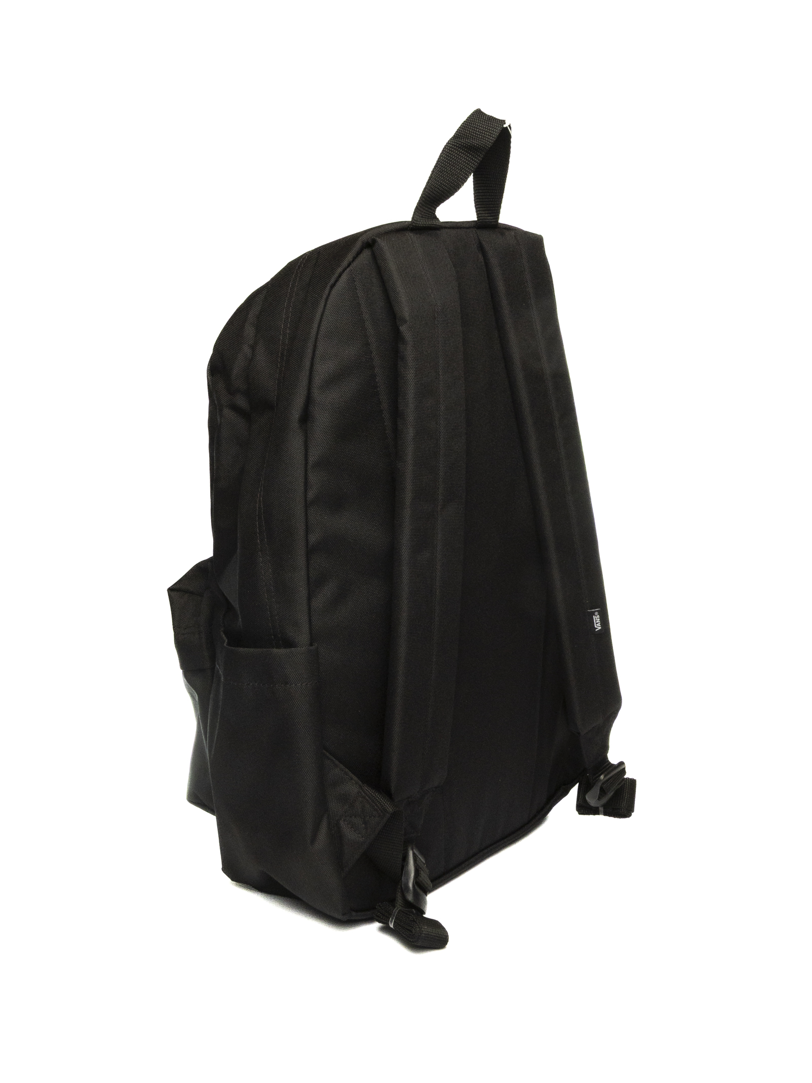 Recycled polyester backpack. Zip closure. Top handle. Adjustable shoulder straps. Interior pocket. Laptop sleeve. Side water bottle pocket. Vans "Flying V" logo on front.