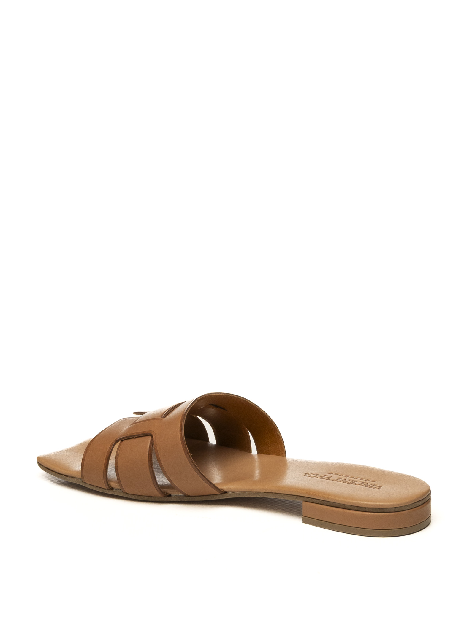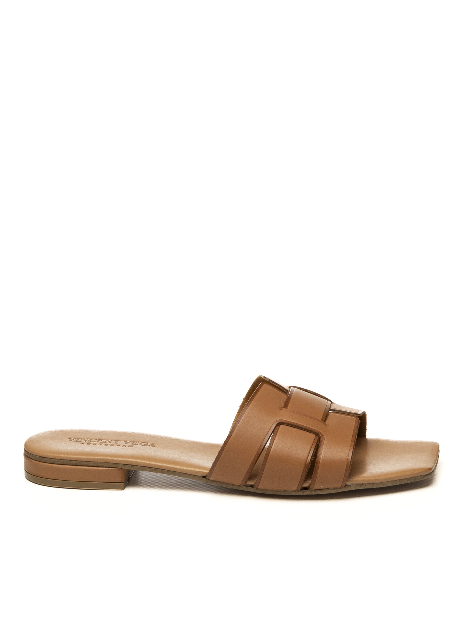 Vincent Vega Assia Flat Sandal, a tribute to the refinement of Made in Italy excellence and artisanal shoemaking mastery. This slip-on sandal stands out for its premium tan calfskin leather upper, selected for its superior softness and a natural luster that enhances the geometric "H" design. The craftsmanship is revealed in the precision of the finishing and the ethical choice of the outsole, made of high-resistance vegan leather, which guarantees flexibility and a sustainable footprint without sacrificing the quality of traditional leather. An exclusive accessory, designed for those seeking essential elegance and noble materials that mold perfectly to the foot, ensuring long-lasting comfort and durability.