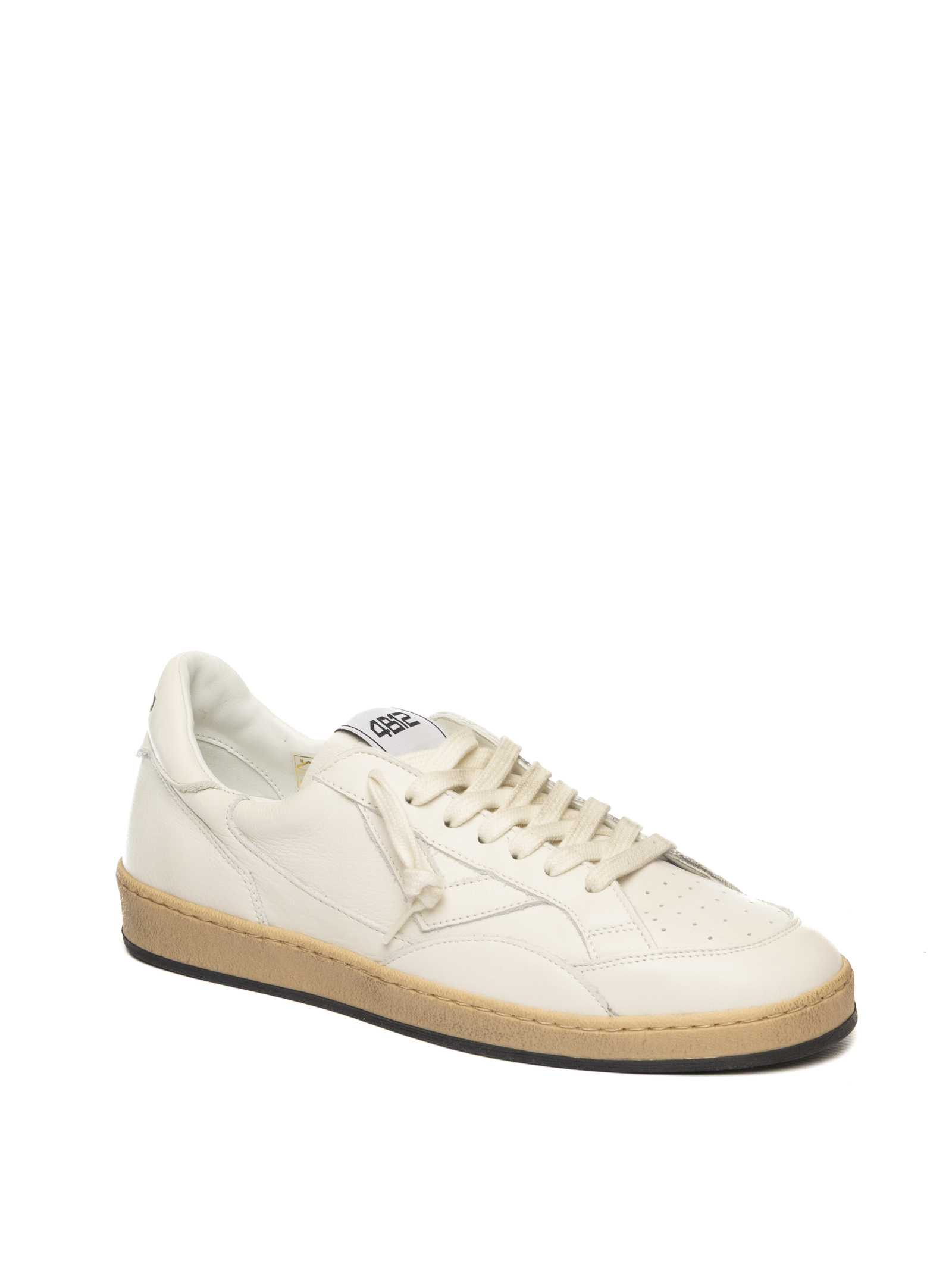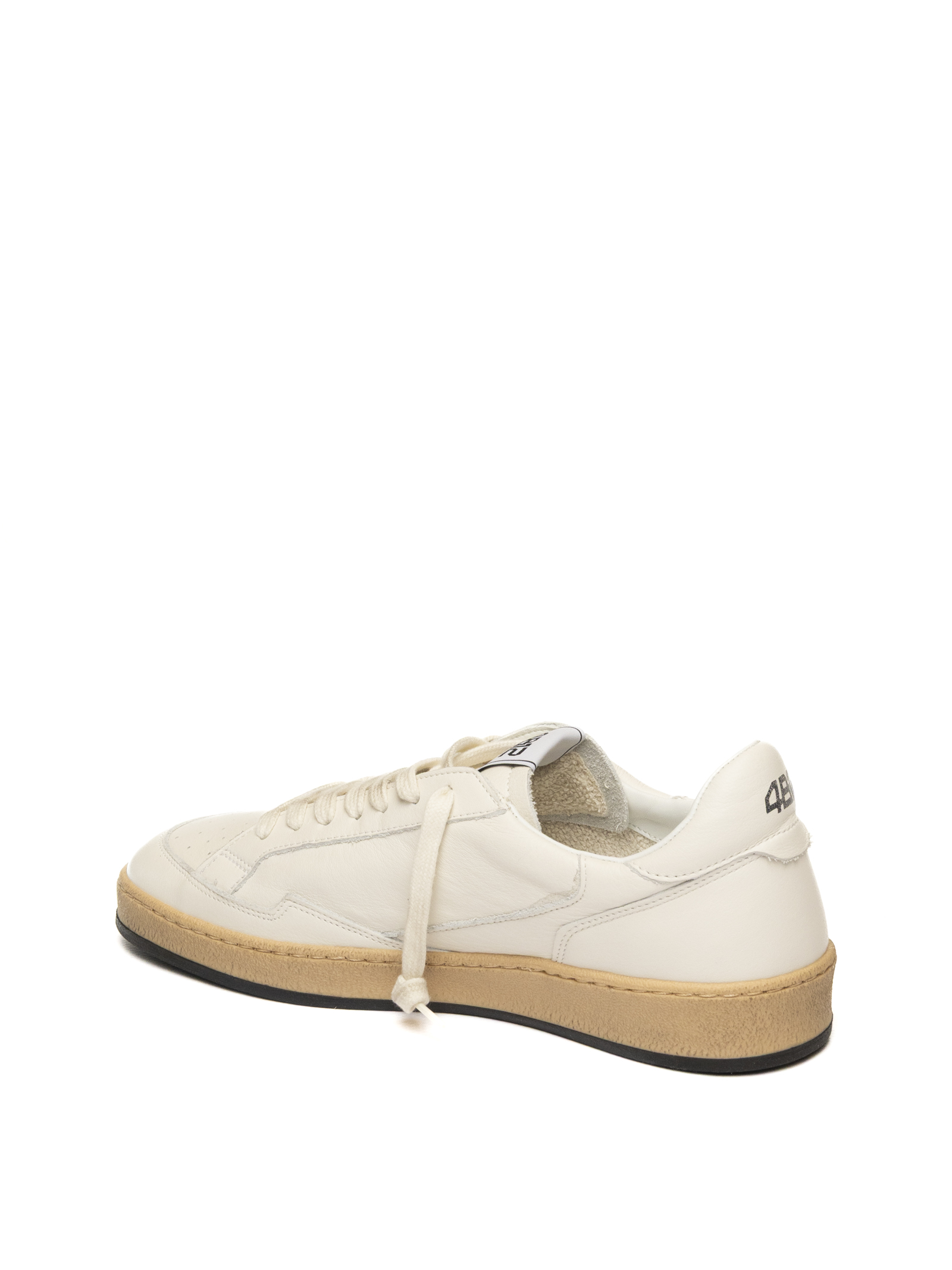 Sneakers dallo stile minimal e raffinato firmata 4B12, realizzata in pelle pieno fiore color panna con finitura liscia e dettagli tono su tono. Il design pulito e la silhouette equilibrata la rendono un modello versatile, ideale per chi ama uno stile discreto ma ricercato. L'interno è interamente foderato in pelle per assicurare morbidezza e traspirabilità, mentre il sottopiede imbottito garantisce un'ottima comodità quotidiana. La suola in gomma beige con bordo nero aggiunge un tocco contemporaneo mantenendo l'anima classica del modello.