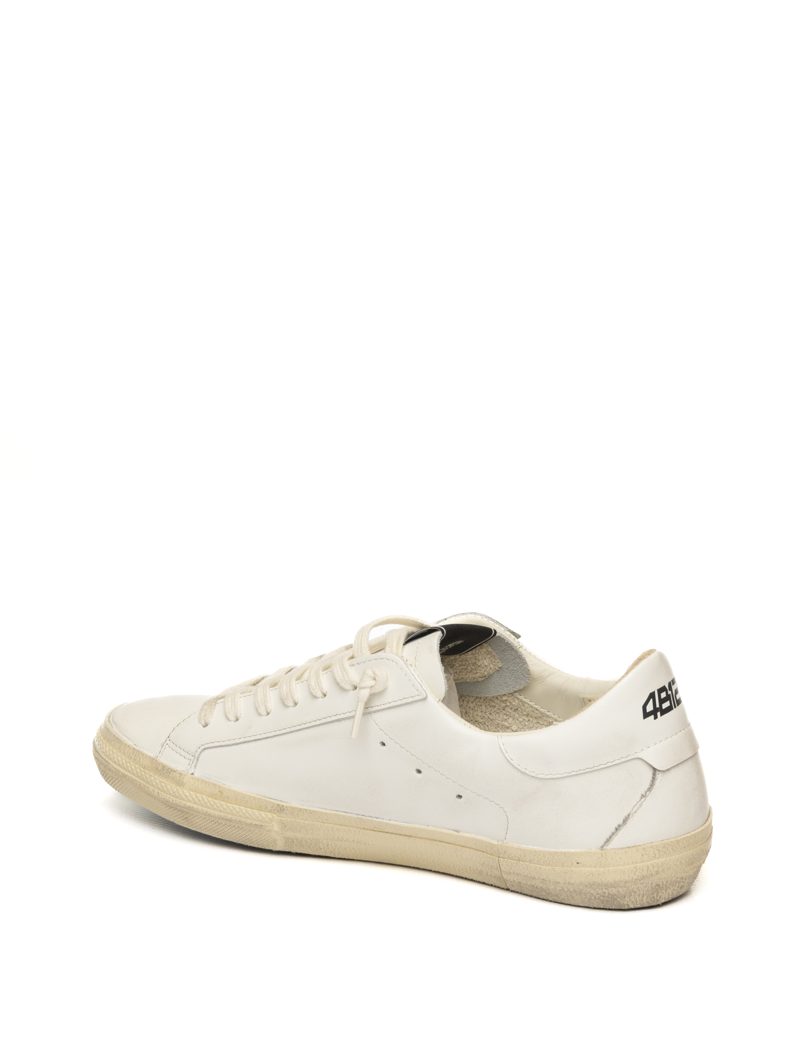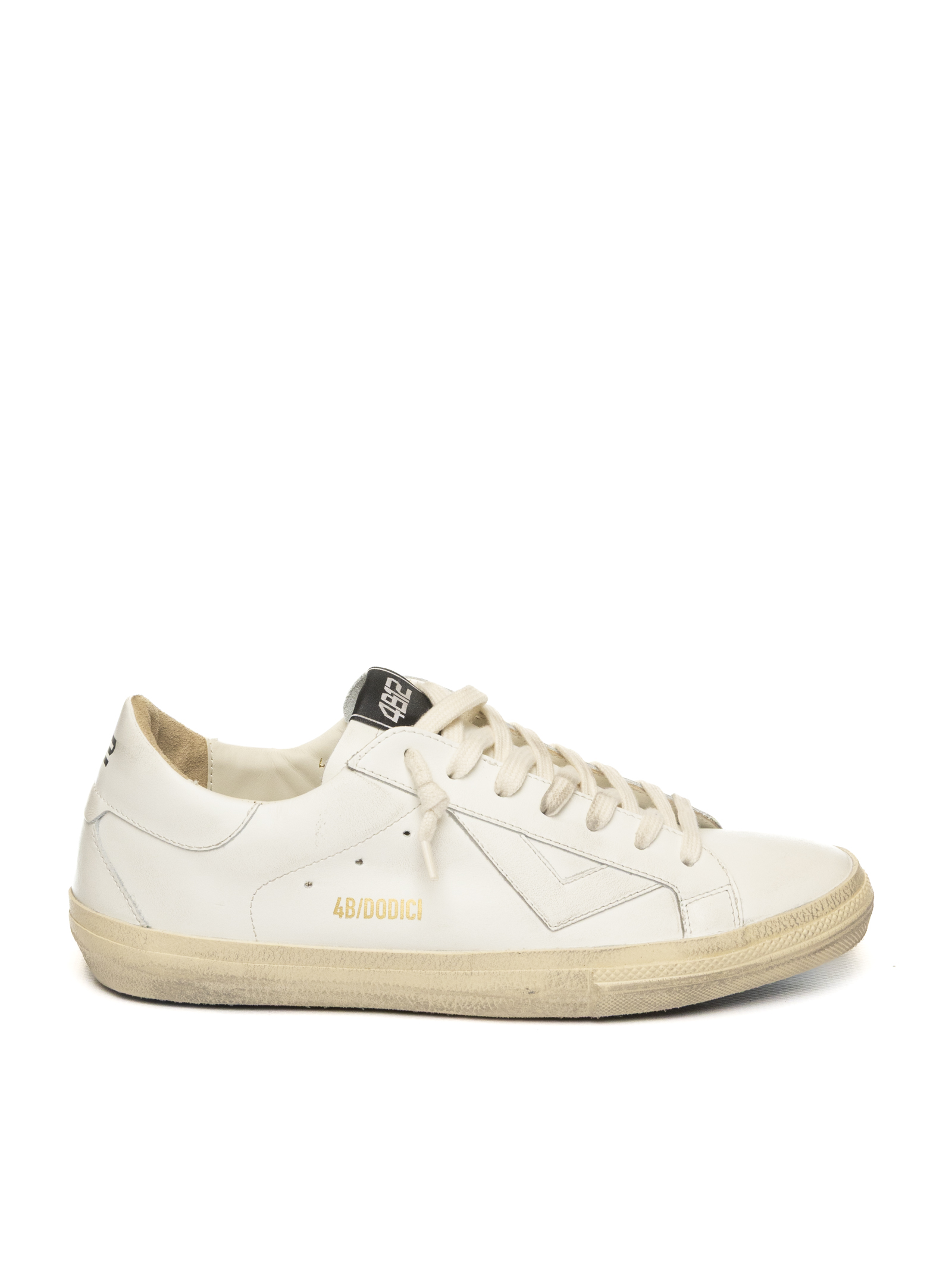 Sneakers 4B12 SUPRIME 214 dallo stile minimal e raffinato, realizzata in pelle liscia color panna con logo laterale tono su tono per un'estetica pulita e contemporanea. Il design essenziale è arricchito da una suola beige effetto vissuto, che dona un tocco vintage e distintivo. L'interno in pelle naturale garantisce traspirabilità e comfort, mentre il sottopiede imbottito assicura una calzata morbida e stabile. Le linee pulite e la costruzione artigianale rendono questo modello perfetto per un look urbano e versatile, da abbinare facilmente a ogni outfit quotidiano.