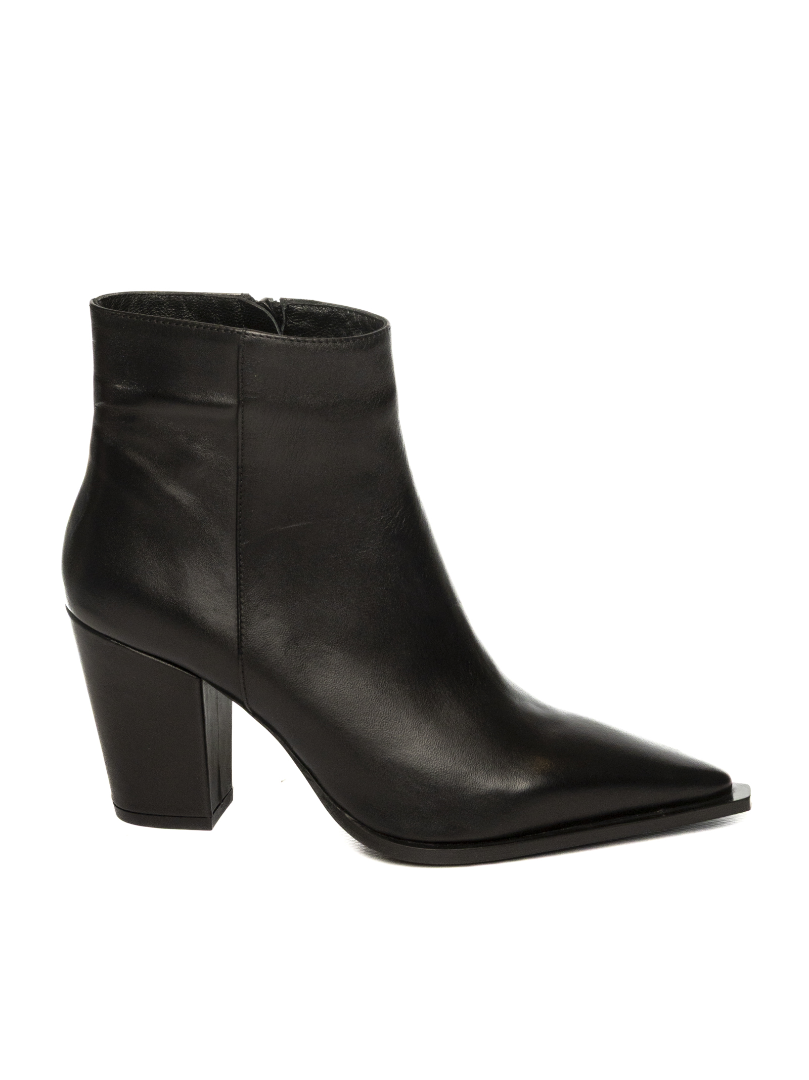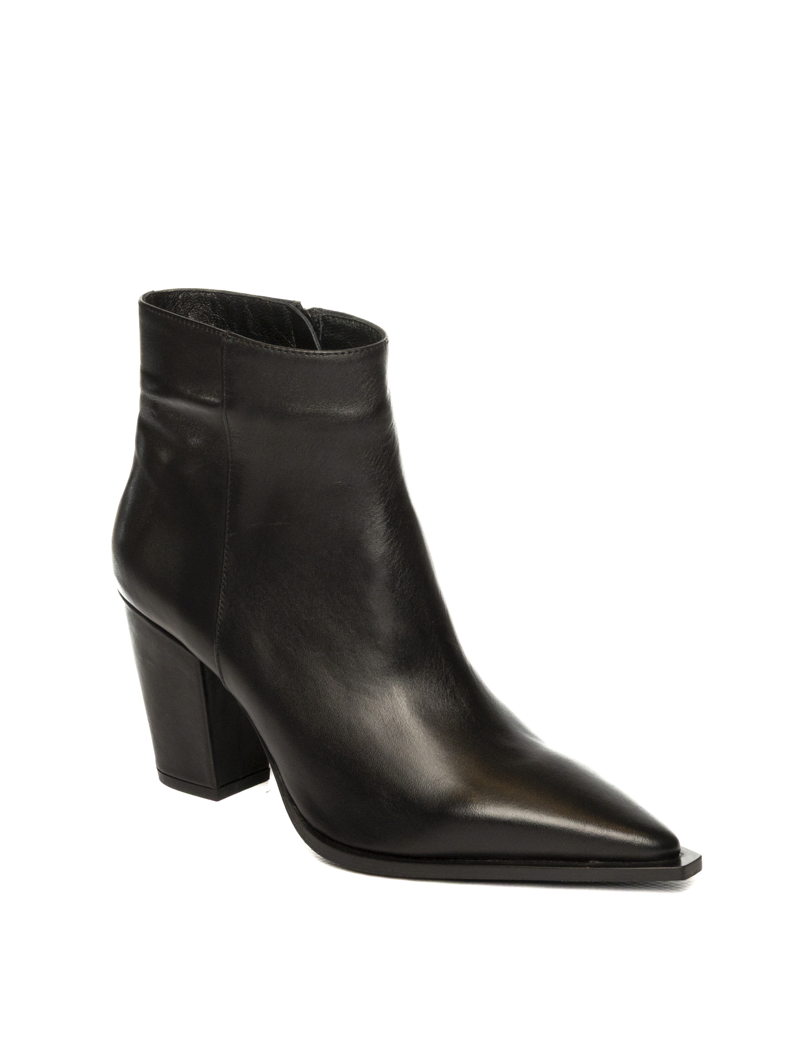 Tronchetto in pelle. Chiusura con zip interna. A punta. Fondo aperto. Sottopiede e fodera in pelle. Tacco largo rivestito. Altezza tacco 70mm. Made in Italy