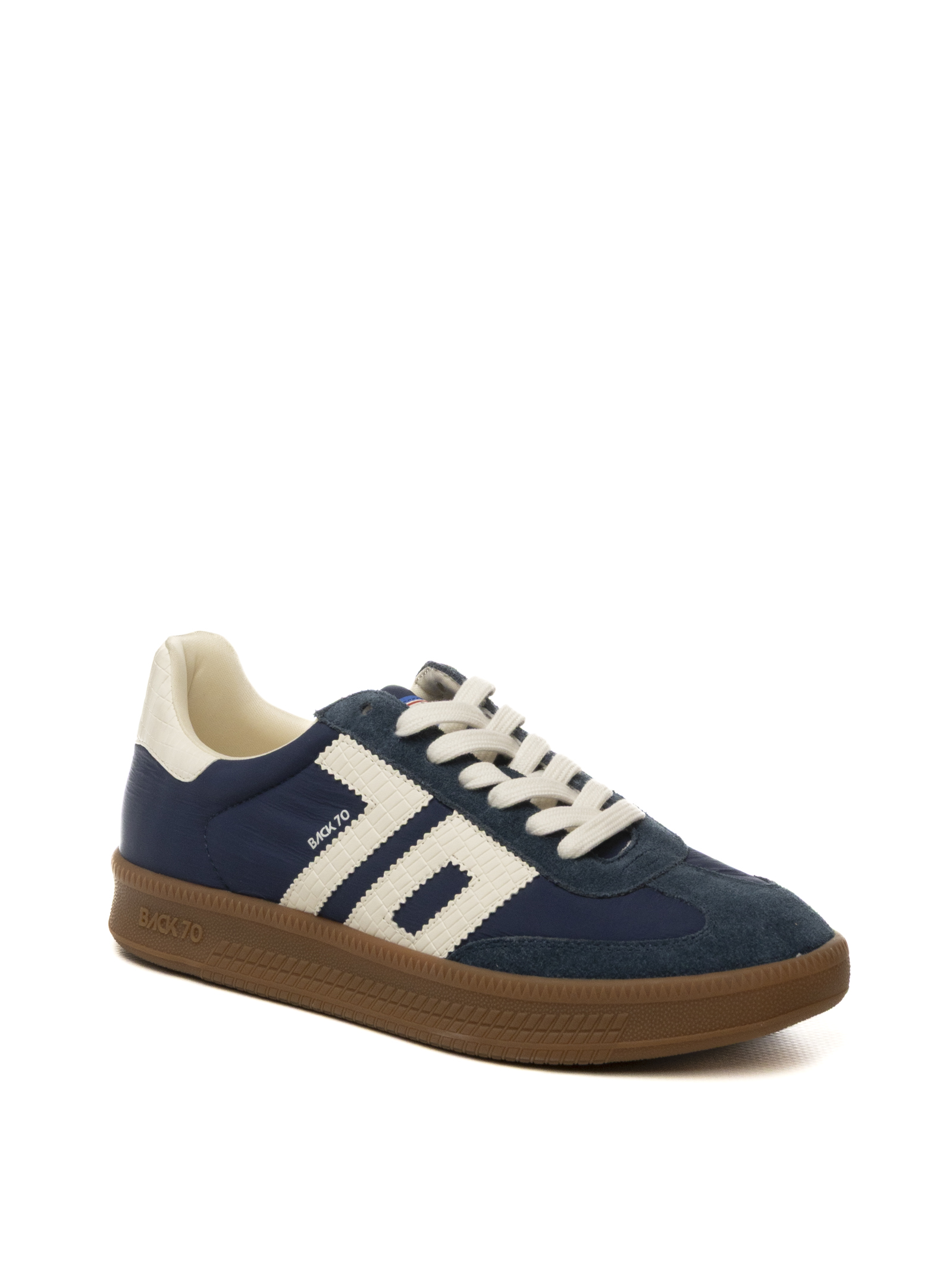 Sneaker Back 70 in variante Navy dal design rétro-sportivo, caratterizzata da una silhouette low-top che fonde materiali tecnici e ispirazione d'archivio degli anni '70.