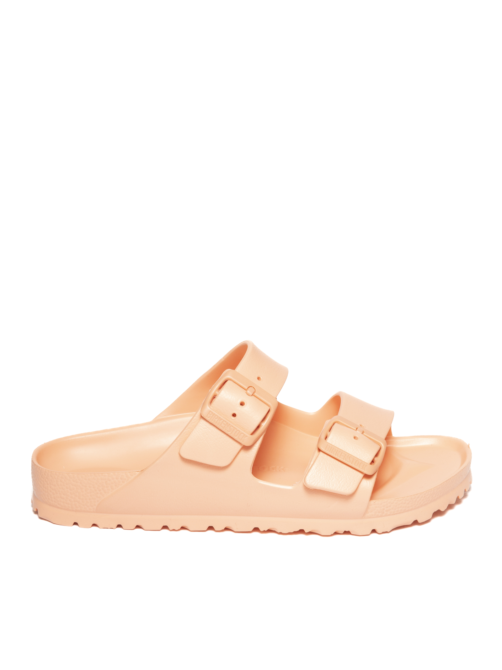 Sandalo con tomaia interamente in eva con due fibbie regolabili. La pregiata plastica EVA inodore e priva di sostanze nocive, è leggera, ammortizzante, estremamente comoda. Impermeabilità perfetta utilizzare la calzatura al mare o in piscina. Plantare anatomico Birkenstock. Fondo antiscivolo ultraleggero. Made in Germany