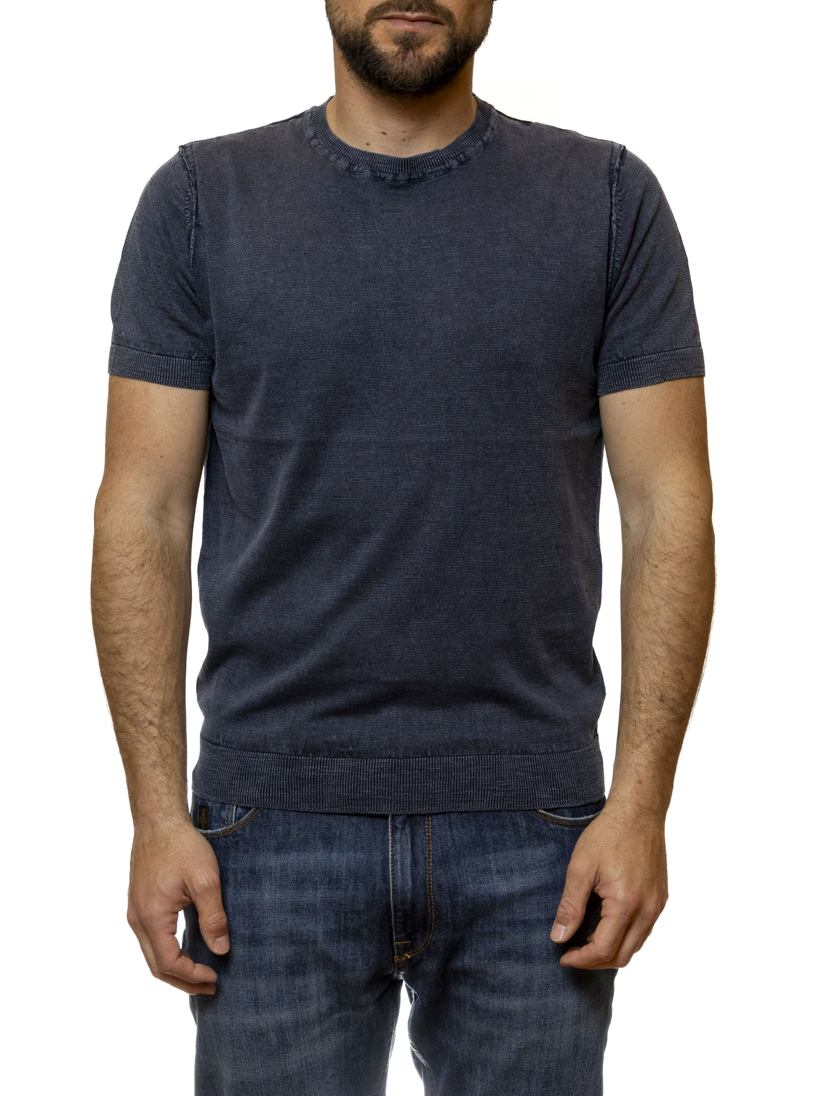 Il design e' definito da un'estetica 'knitwear' raffinata che eleva il concetto della classica t-shirt grazie alla sua lavorazione a maglia sottile. Caratterizzata da un girocollo con finitura a micro-costine e da un taglio Slim Fit che valorizza la figura in modo dinamico, questa maglia rappresenta l'unione ideale tra lo stile sartoriale e la praticita' quotidiana. La tonalita' blu e' estremamente versatile: perfetta se abbinata a un denim chiaro per un look urban a contrasto, o a un pantalone chino beige per un outfit smart-casual impeccabile. E' il capo ideale per chi cerca un'essenziale di alta qualita', capace di distinguersi per texture e raffinatezza.