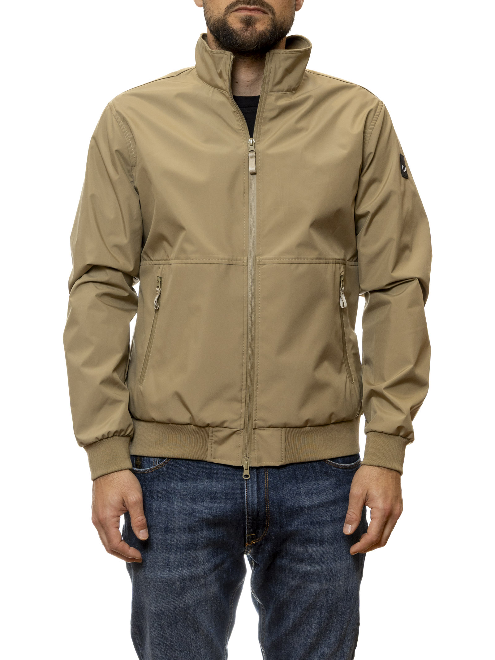 Questo capo si distingue per il suo design pulito e la sua silhouette essenziale, rappresentando l'interpretazione moderna del classico bomber da mezza stagione. Presentato nella tonalità Cuoio, il giubbino è realizzato in un leggero tessuto tecnico softshell, progettato per offrire un'efficace barriera contro il vento e una protezione idrorepellente in caso di piogge leggere. La particolare composizione del tessuto garantisce un'elevata traspirabilità e una piacevole elasticità, rendendolo perfetto per il dinamismo della vita quotidiana.