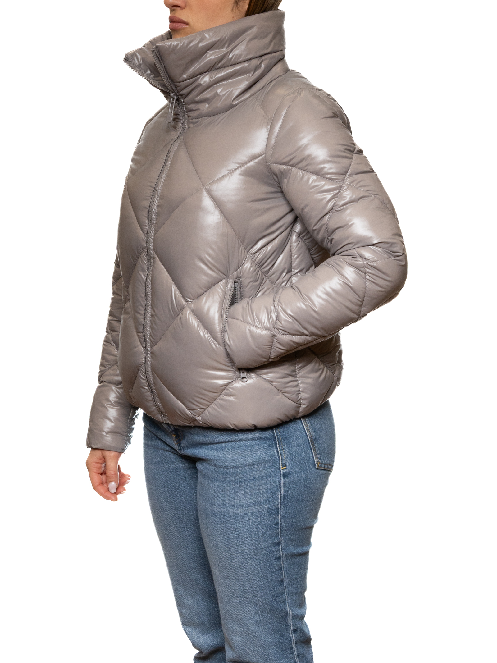 Piumino da donna dal design moderno e ricercato, pensato per garantire calore e comfort durante la stagione invernale senza rinunciare allo stile. Realizzato in materiale lucido e resistente, offre un' ottima protezione dal freddo grazie alla sua imbottitura leggera ma altamente isolante. La trapuntatura a rombi dona un look distintivo e valorizza la silhouette con un effetto armonioso e contemporaneo.