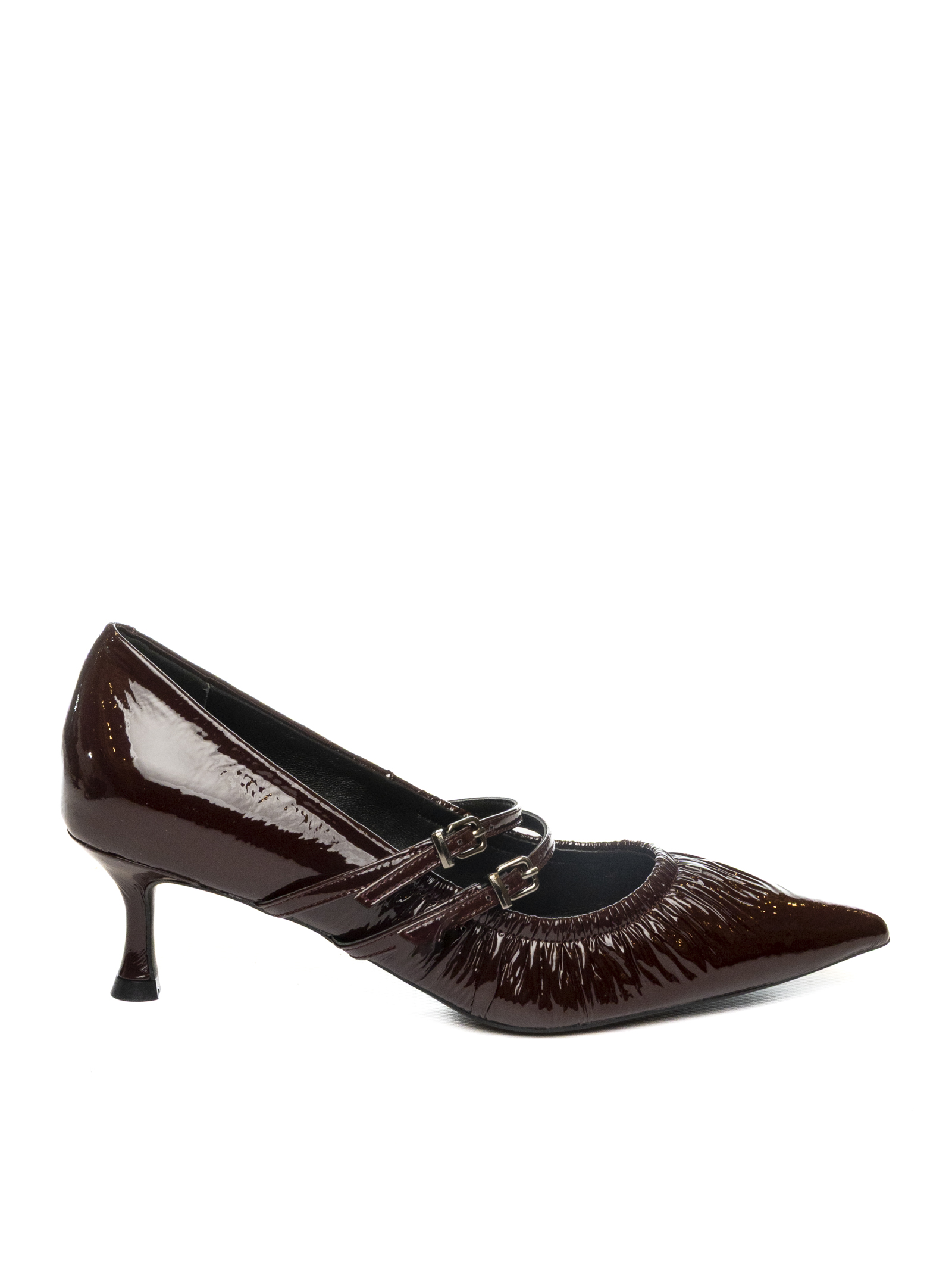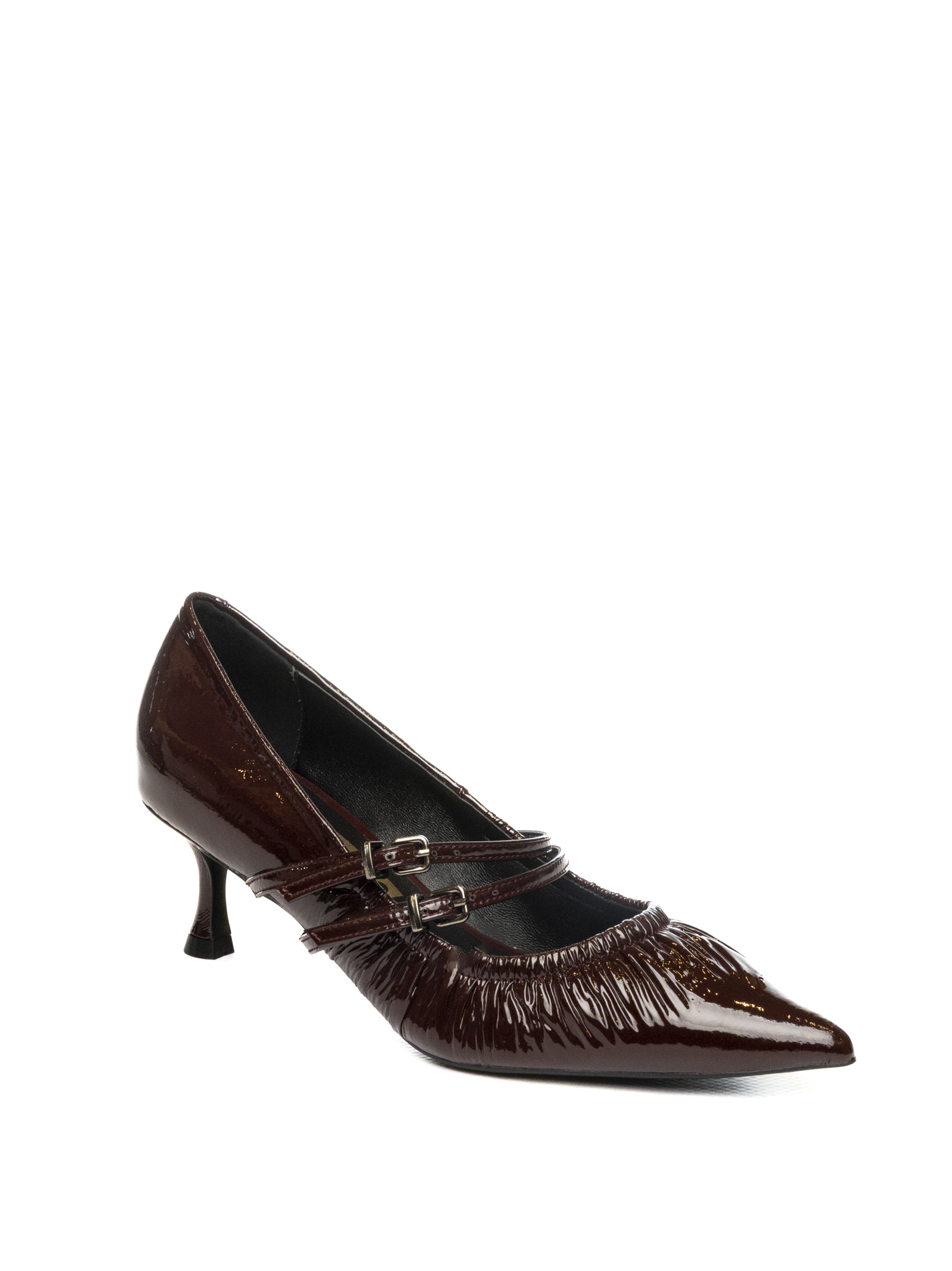 Il modello Chiconic 262 rappresenta una reinterpretazione contemporanea della classica décolleté, con dettagli sartoriali che ne esaltano l'eleganza. Realizzata in pelle verniciata bordeaux di alta qualità, presenta una parte anteriore con effetto drappeggiato che conferisce movimento e carattere alla silhouette.