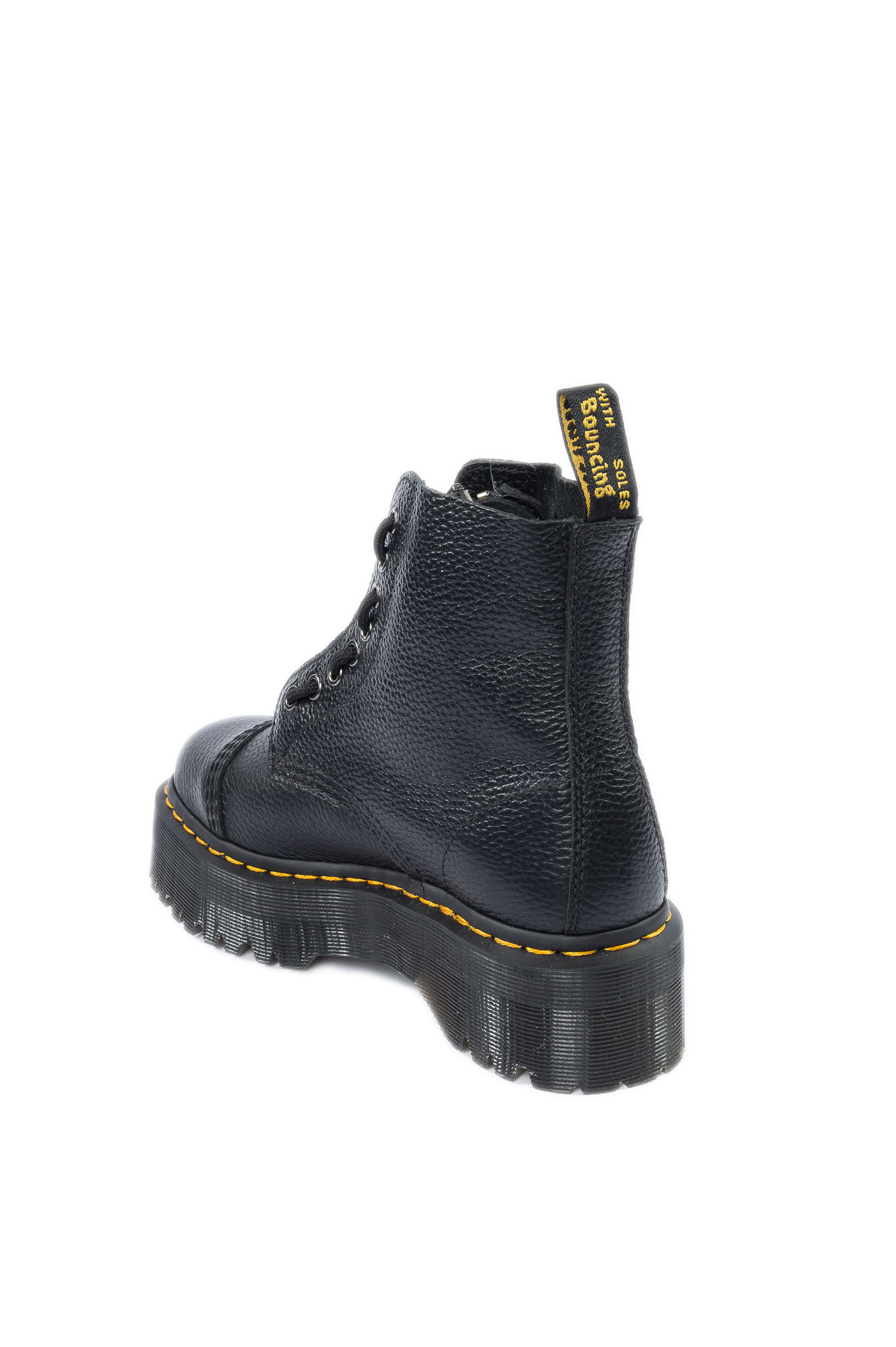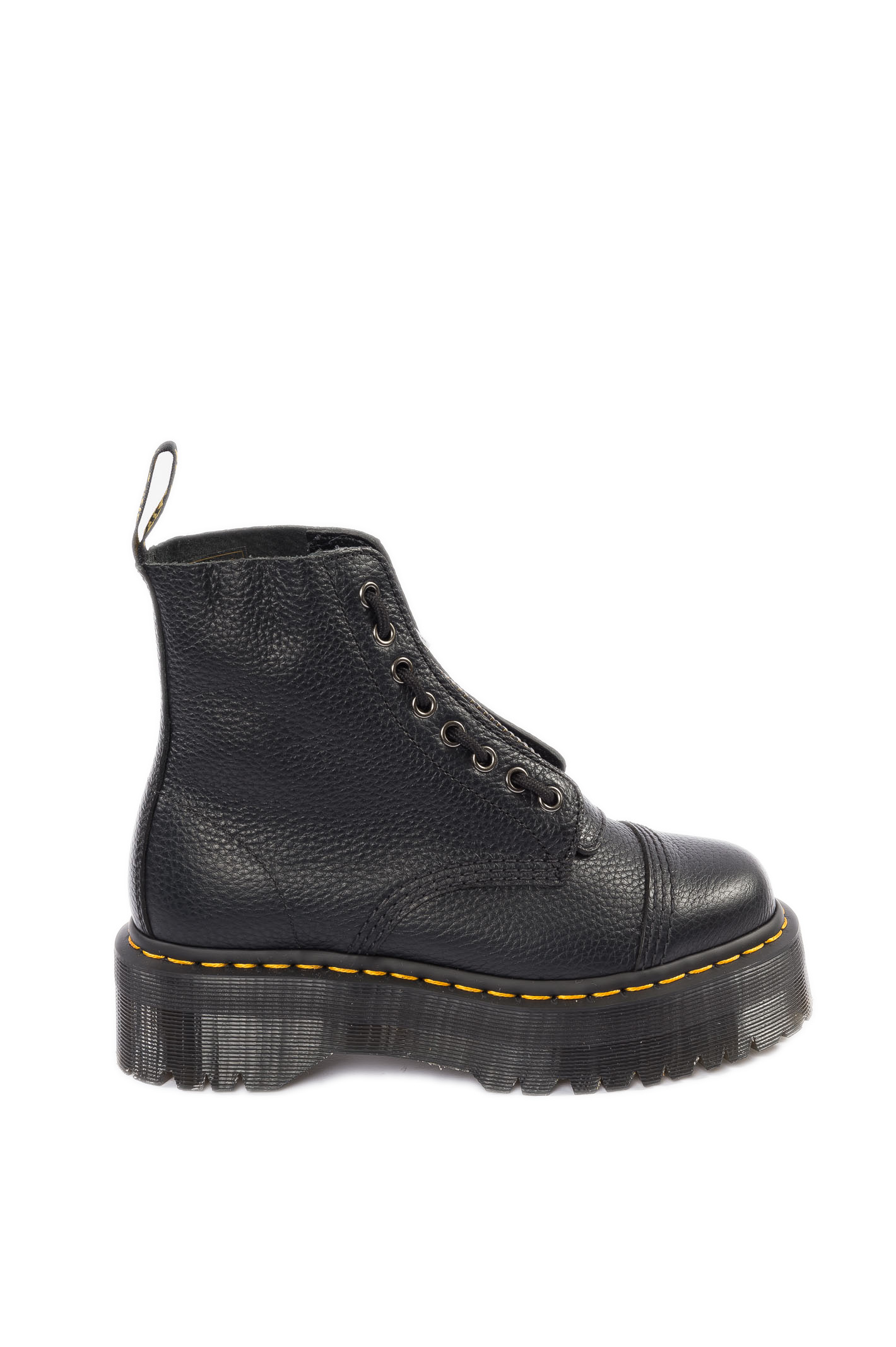 Anfibio in nappa. Chiusura con zip frontale e lacci. Punta rotonda. Tirantino posteriore logato. Cuciture gialle. Platform. Suola in gomma.