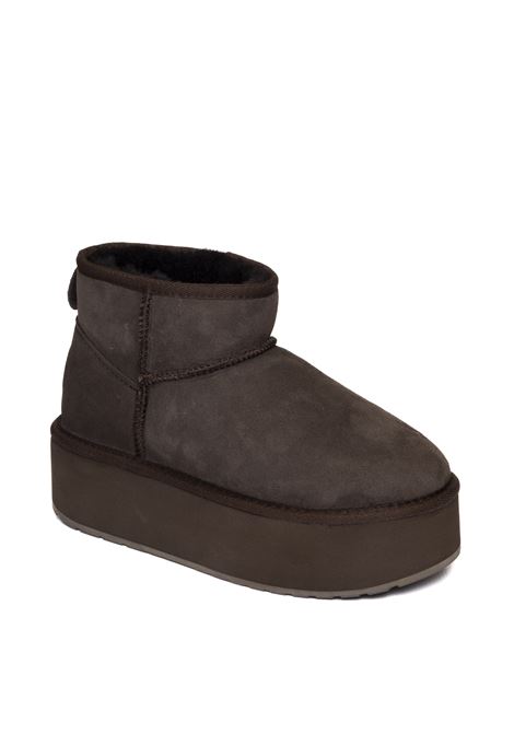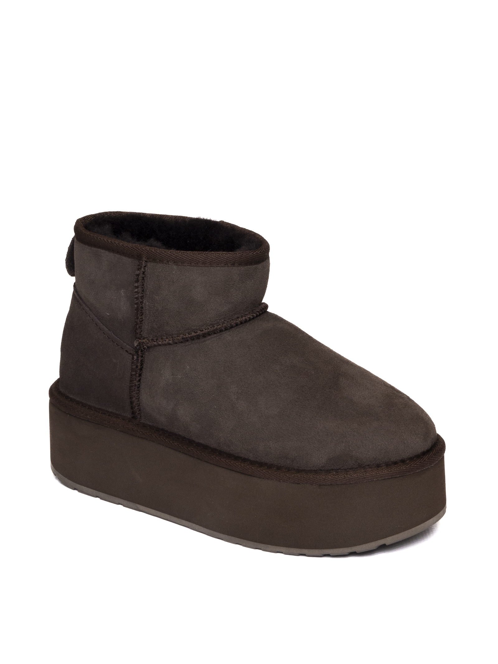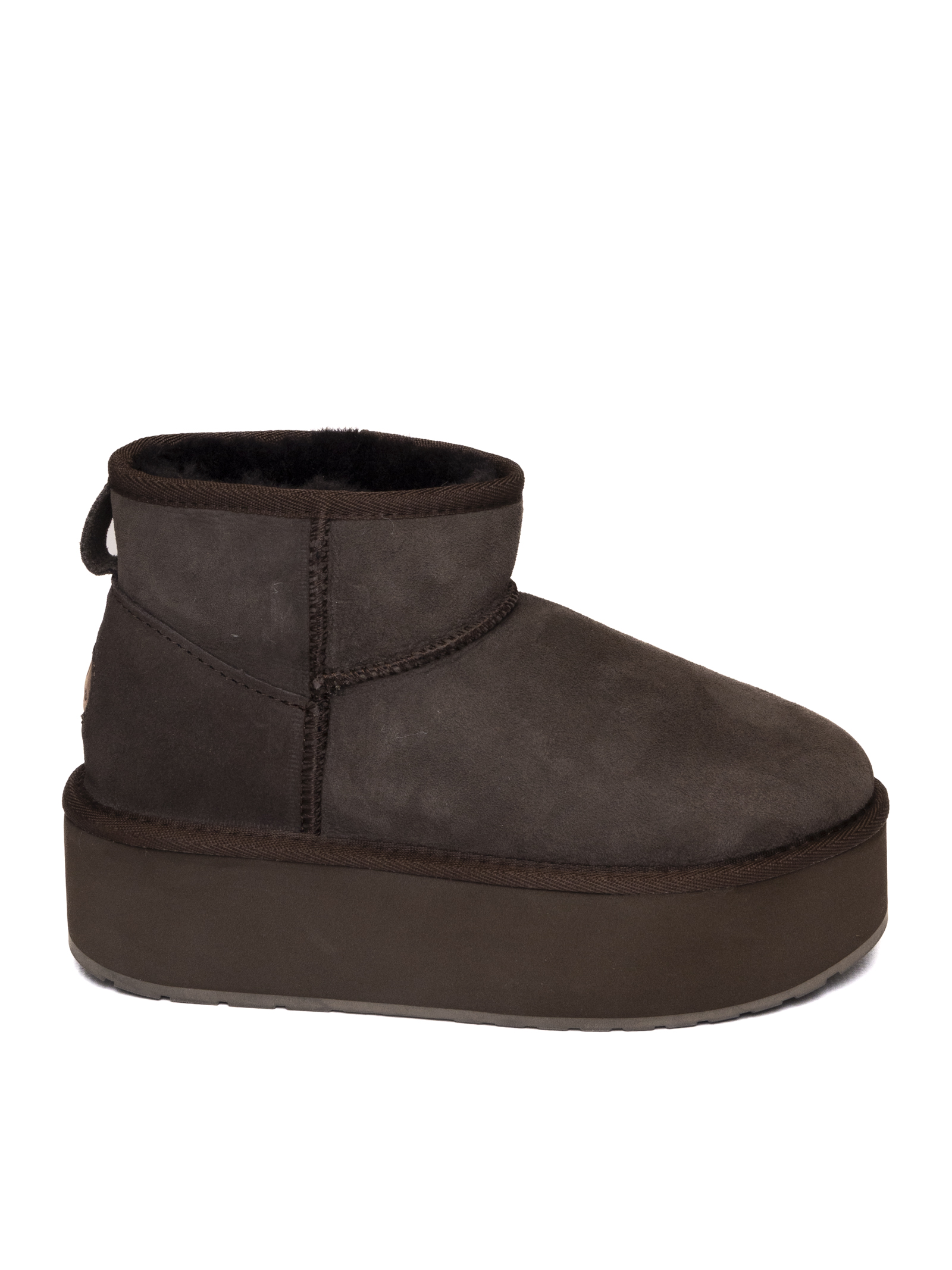 Realizzato in morbido montone idrorepellente, offre calore e protezione con una suola platform da 50 mm che aggiunge altezza e stile. Ideale per chi desidera un look moderno senza rinunciare al comfort tipico del marchio.