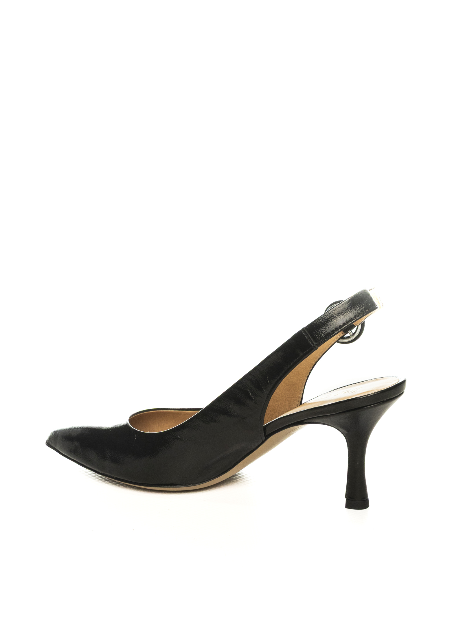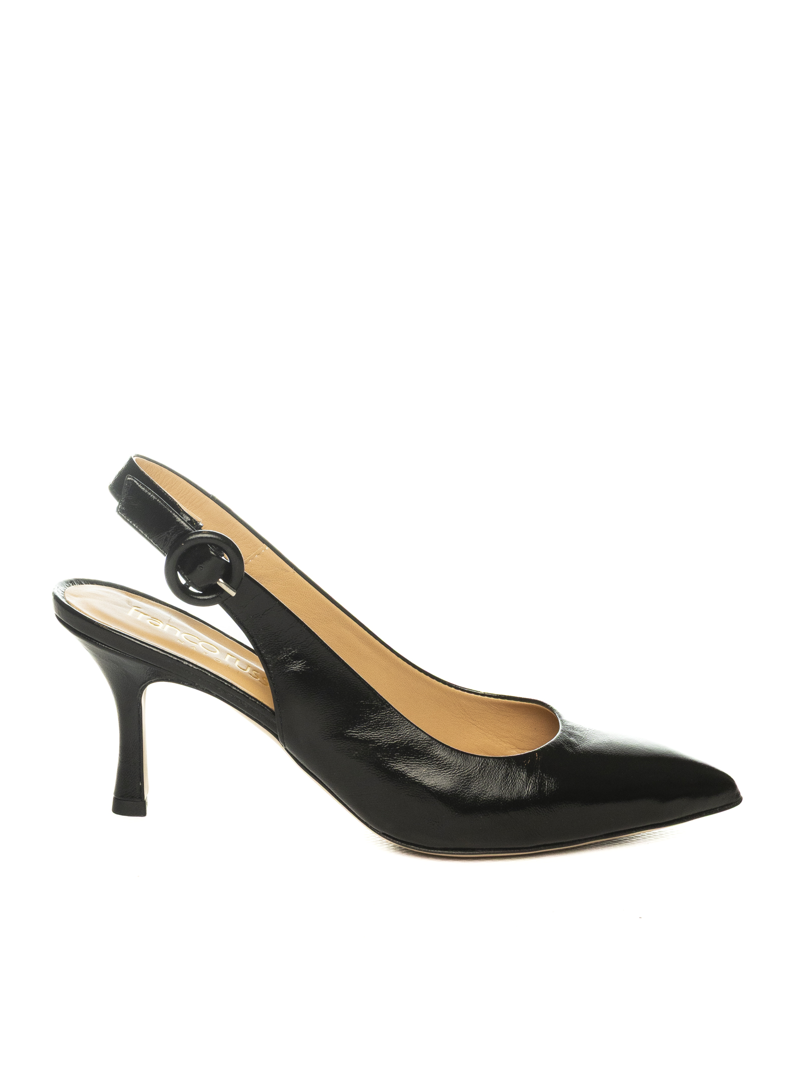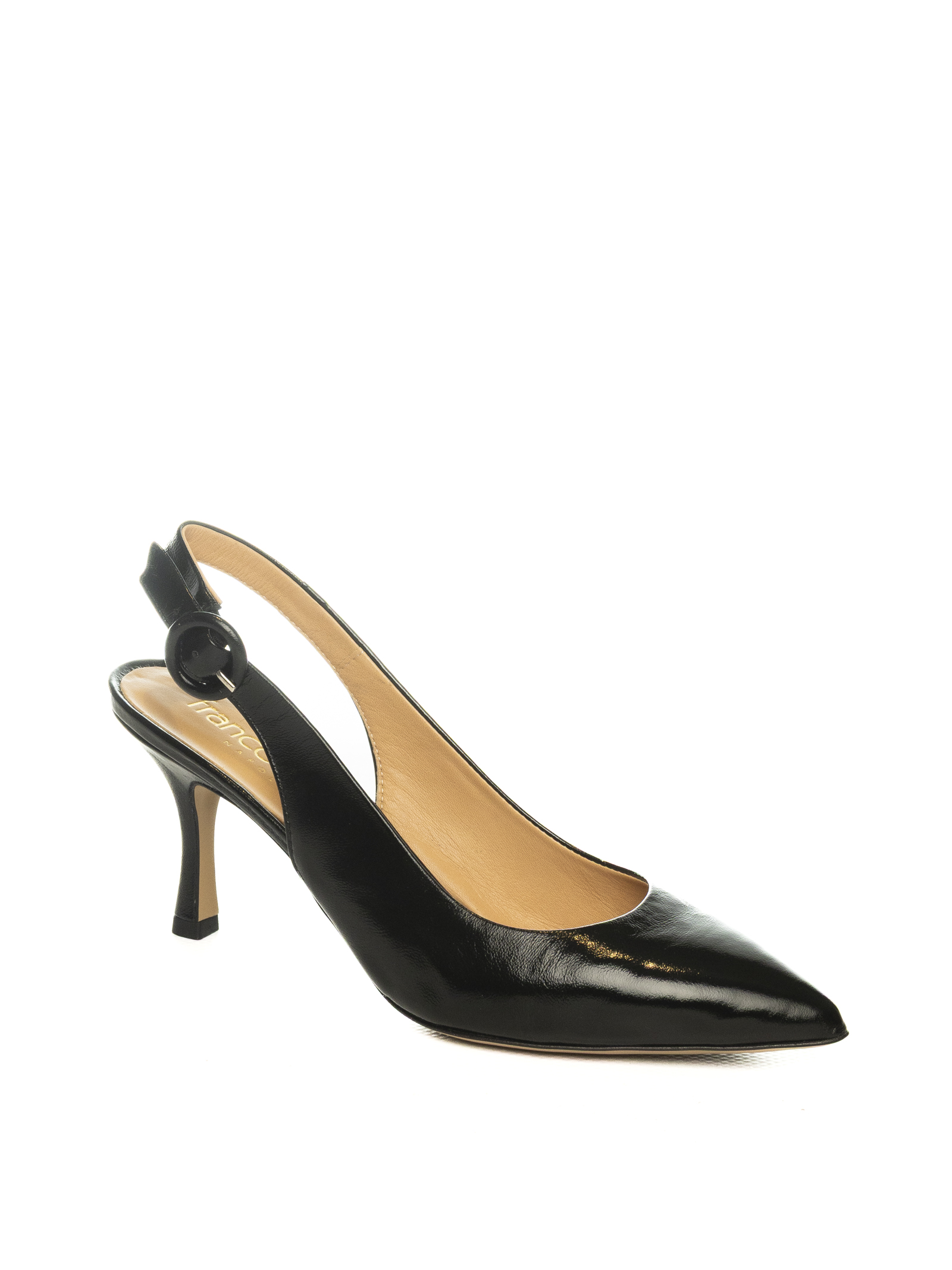 Chanel in pelle naplak. Chiusura con cinturino regolabile laterale. Lavorazione a sacchetto. Extra confort. Sottopiede in pelle. Tacco a rocchetto. Altezza tacco 60mm. Extra comfort. Made in Italy