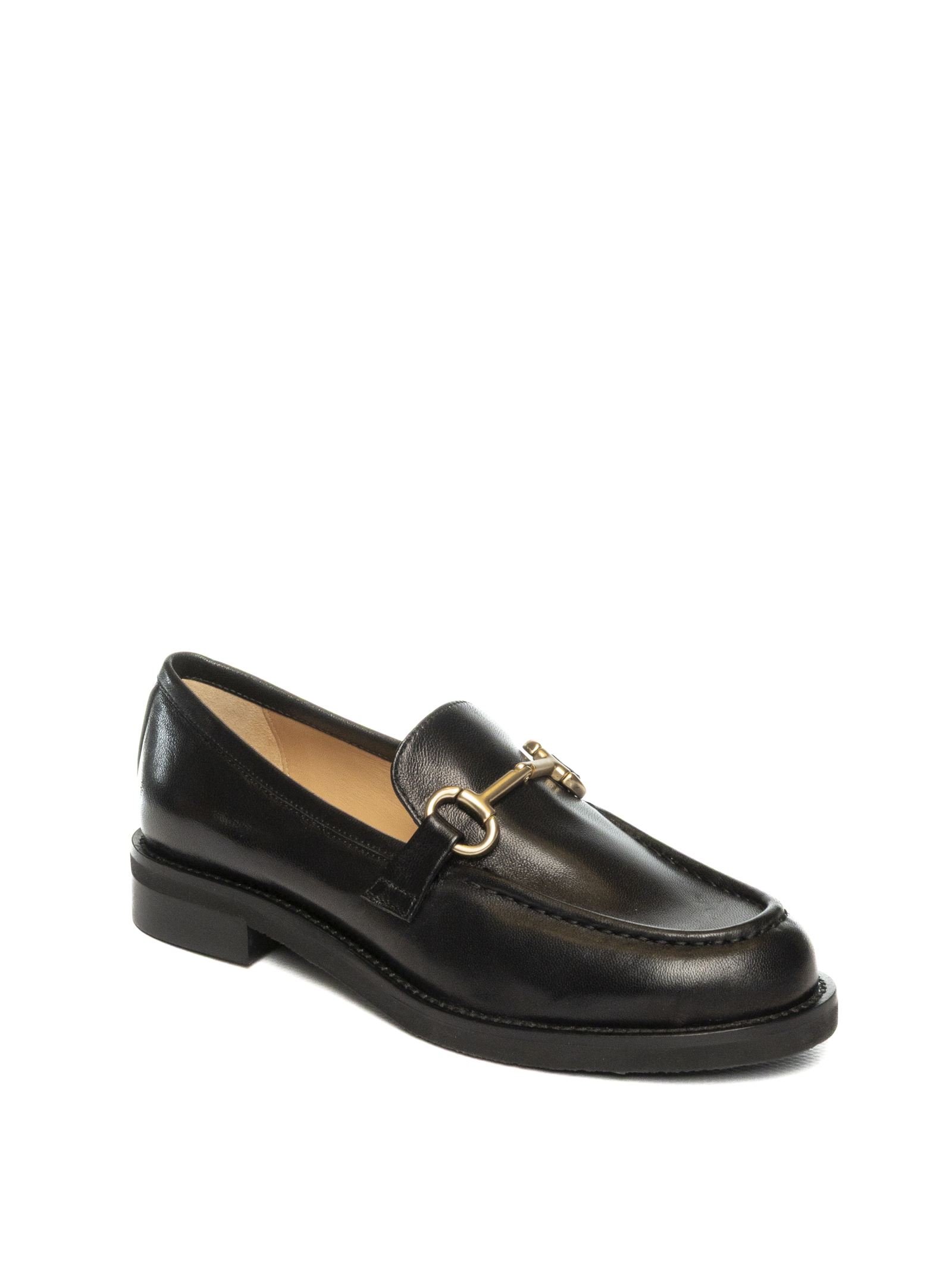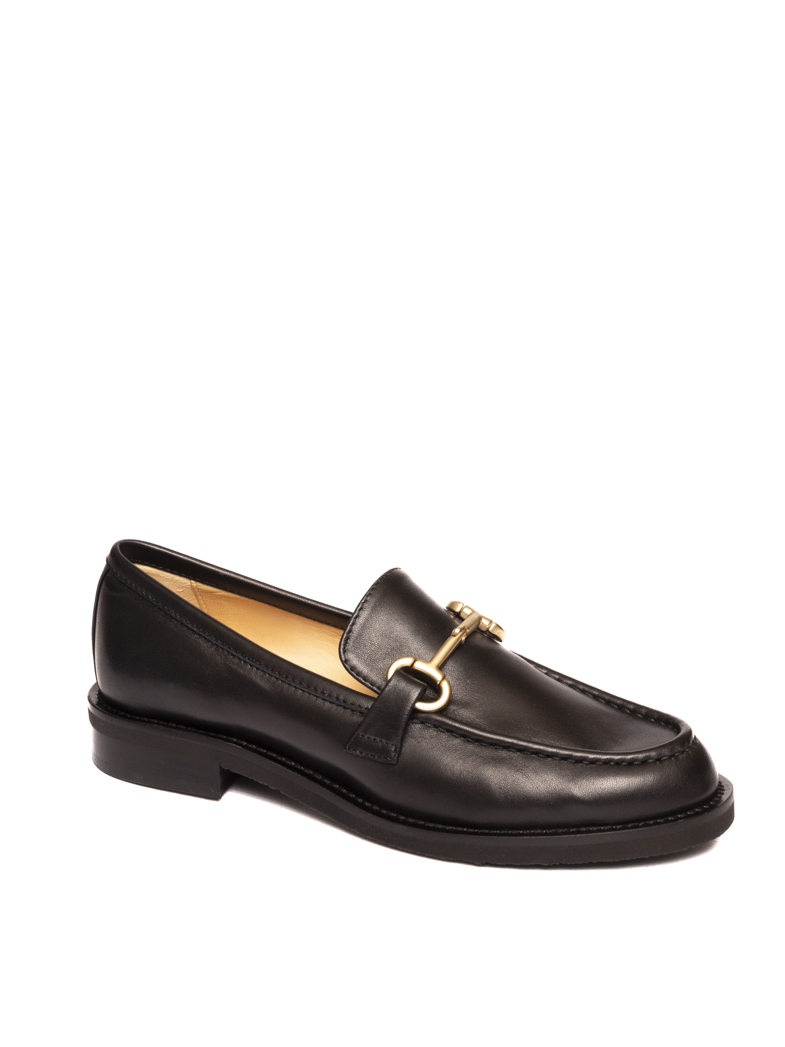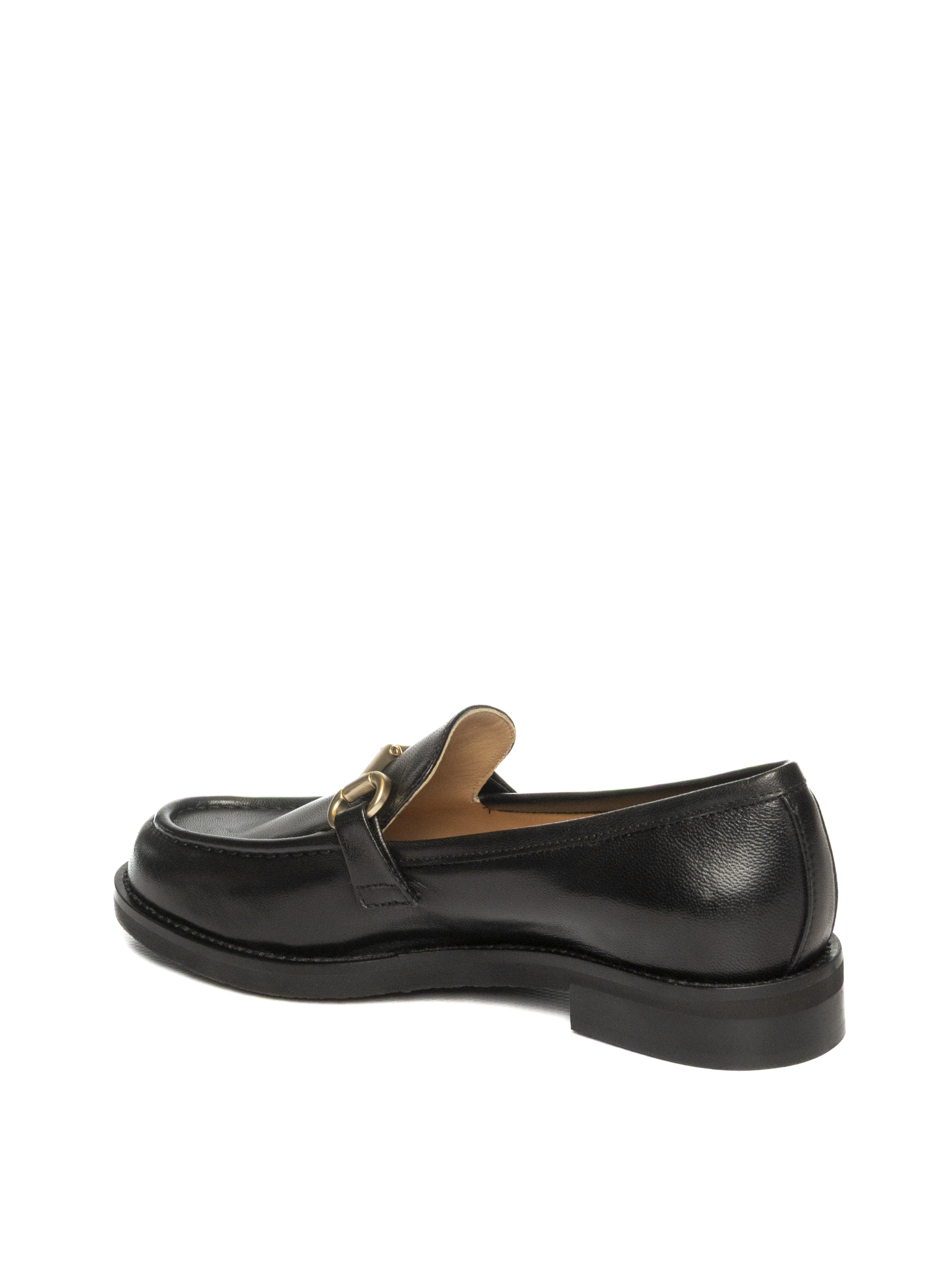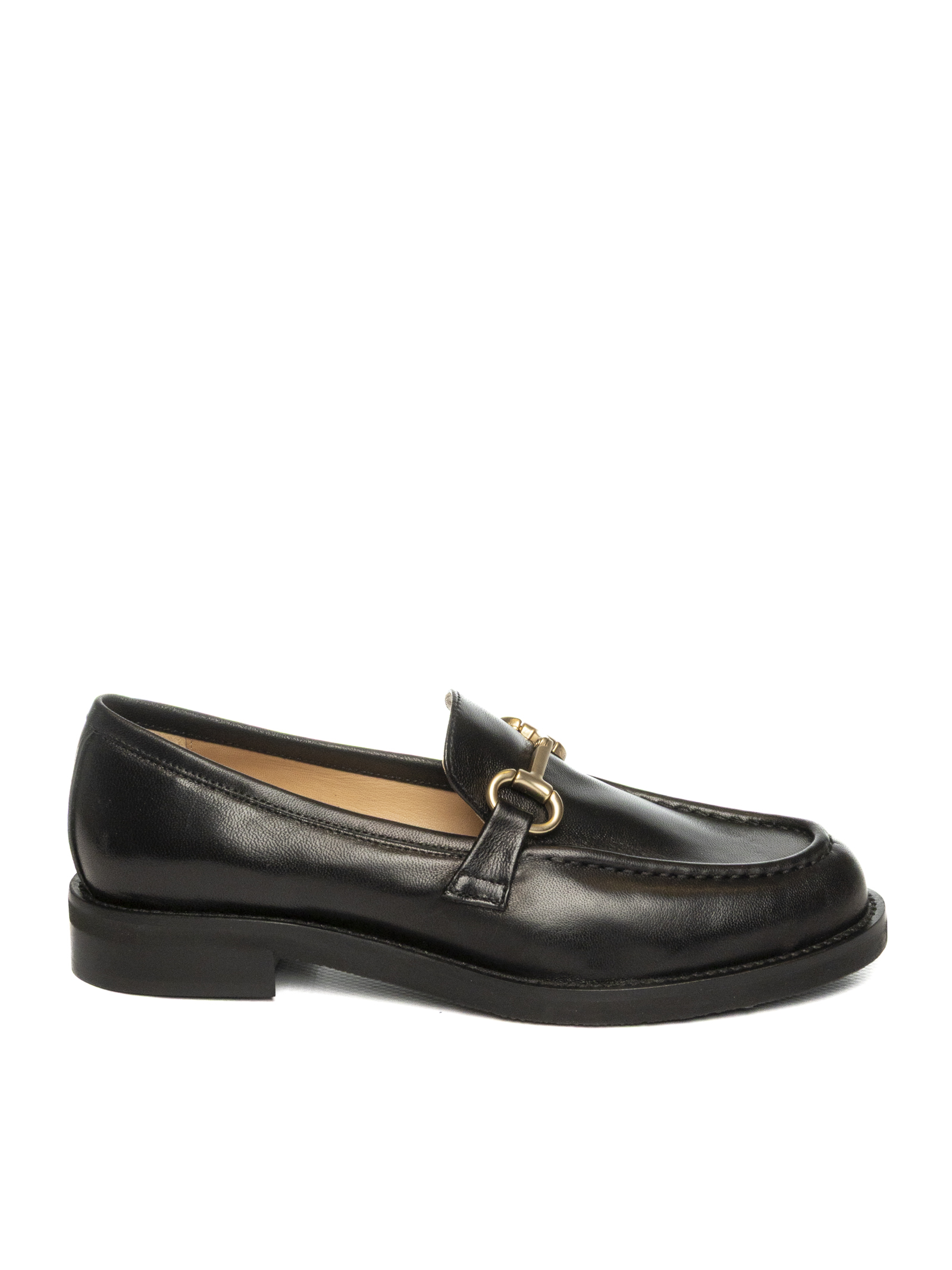 Mocassino in nappa. Morsetto in metallo frontale. Sottopiede e fodera in pelle. Cuciture in rilievo. Suola in gomma. Made in Italy