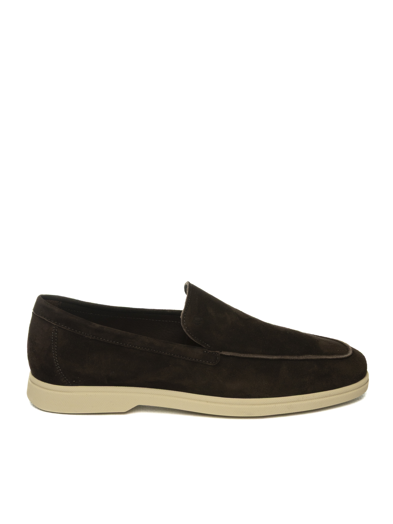 Mocassino in pelle scamosciata. Semifoderato in pelle. Morbido sottopiede estraibile in memory. Suola leggera in gomma. Made in Italy