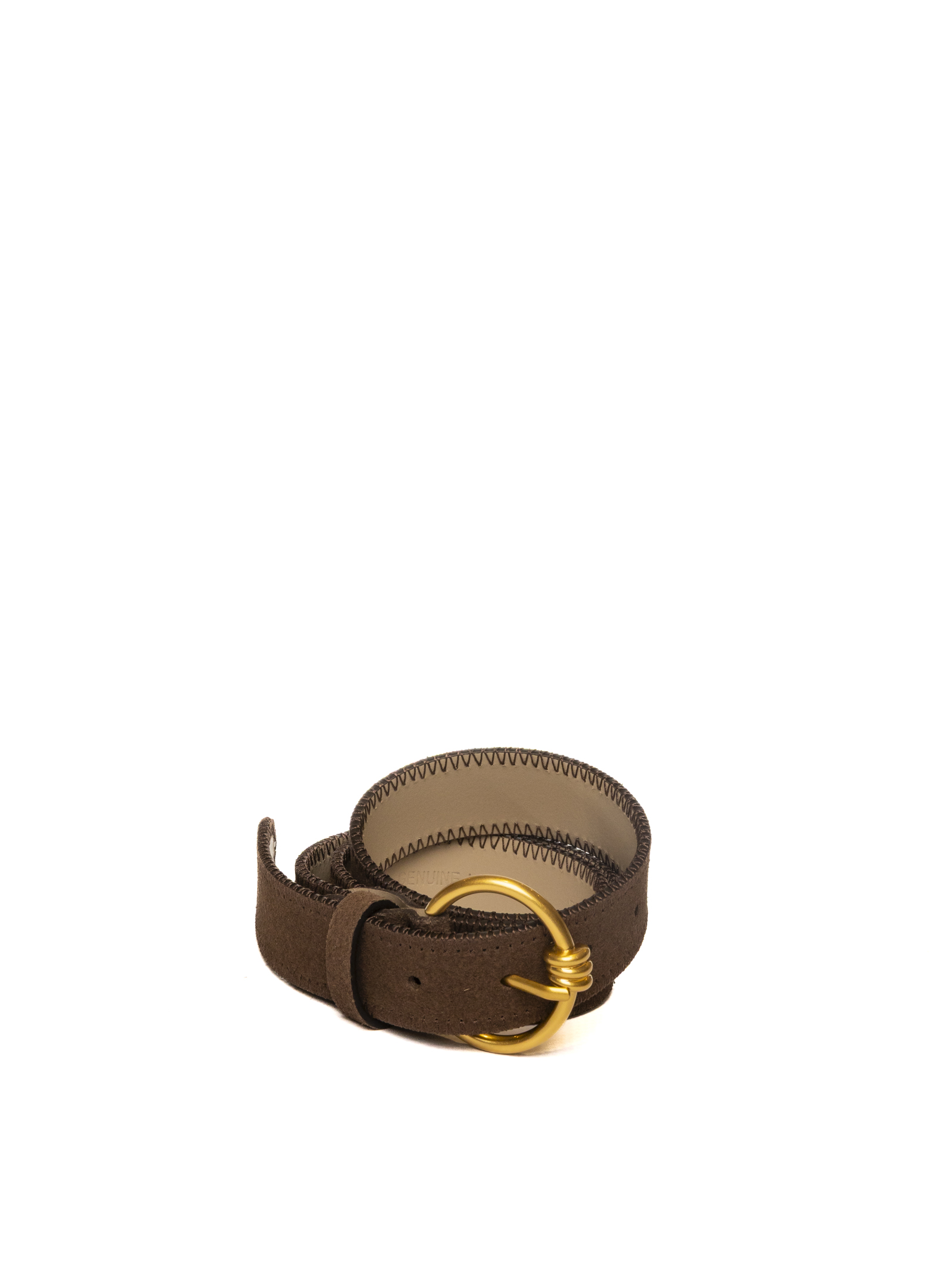 Questa cintura in camoscio marrone rappresenta il perfetto equilibrio tra stile classico e qualità artigianale.