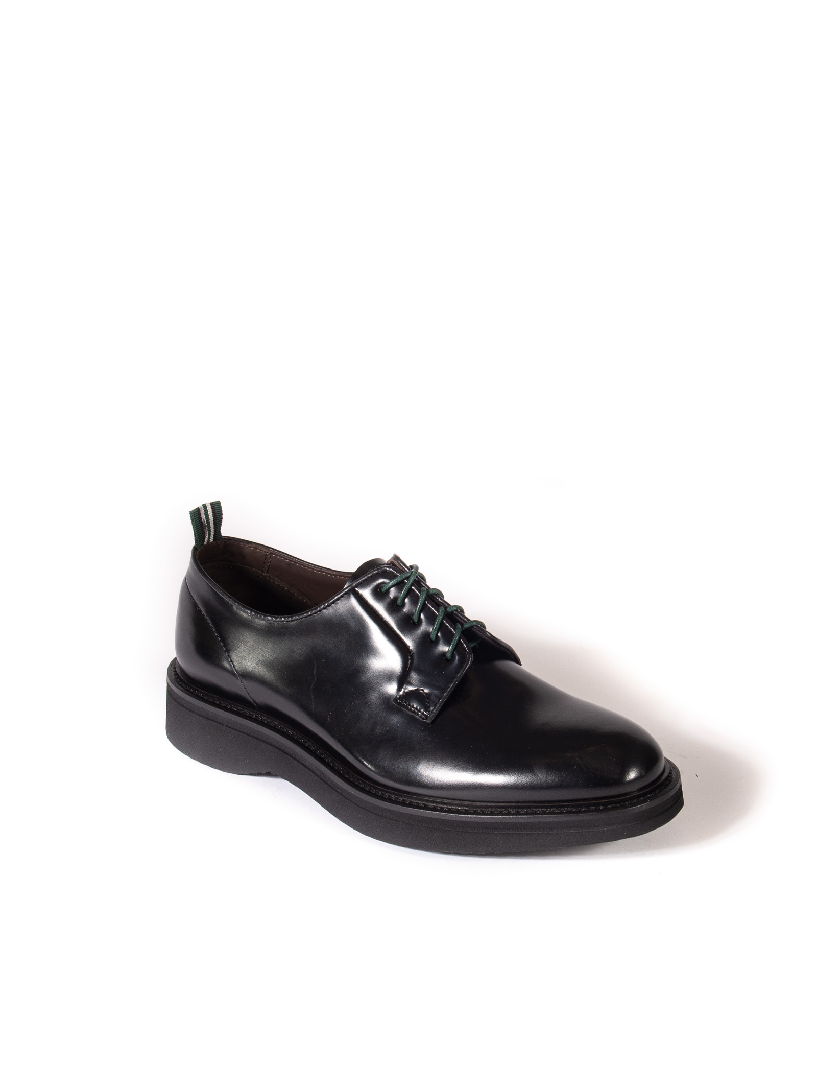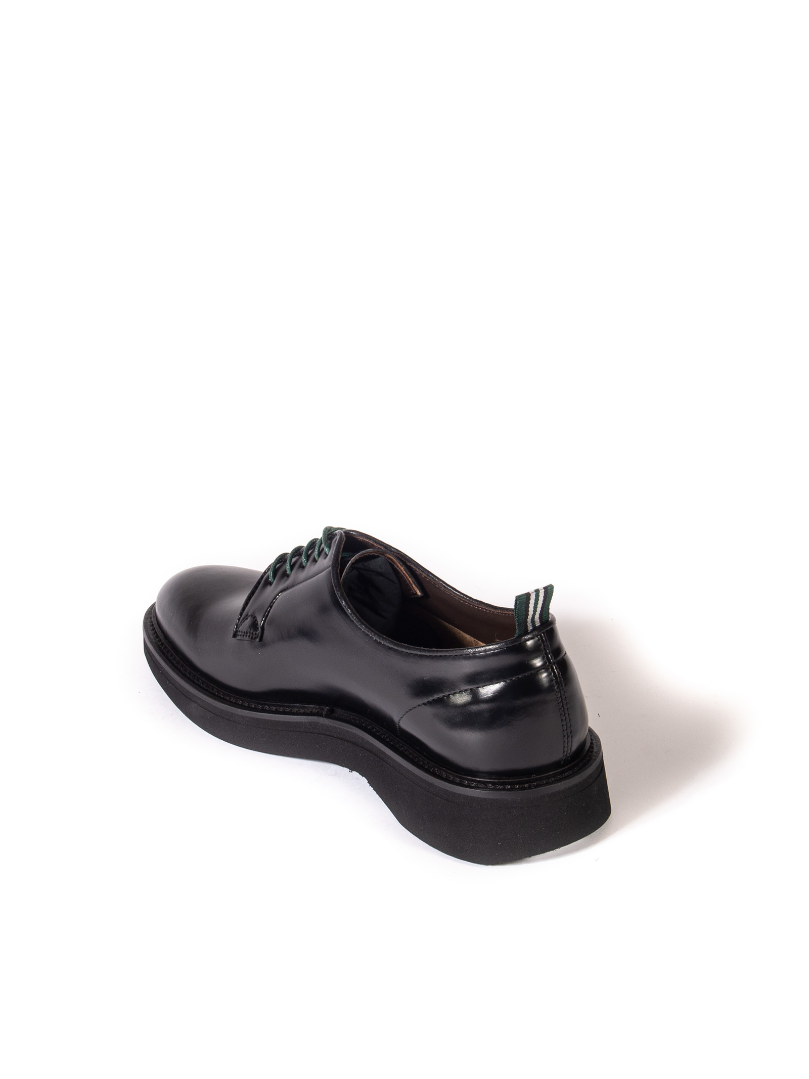Derby in pelle liscia nero lucida, espressione dell'artigianalità autentica e dello stile raffinato firmato Green George.