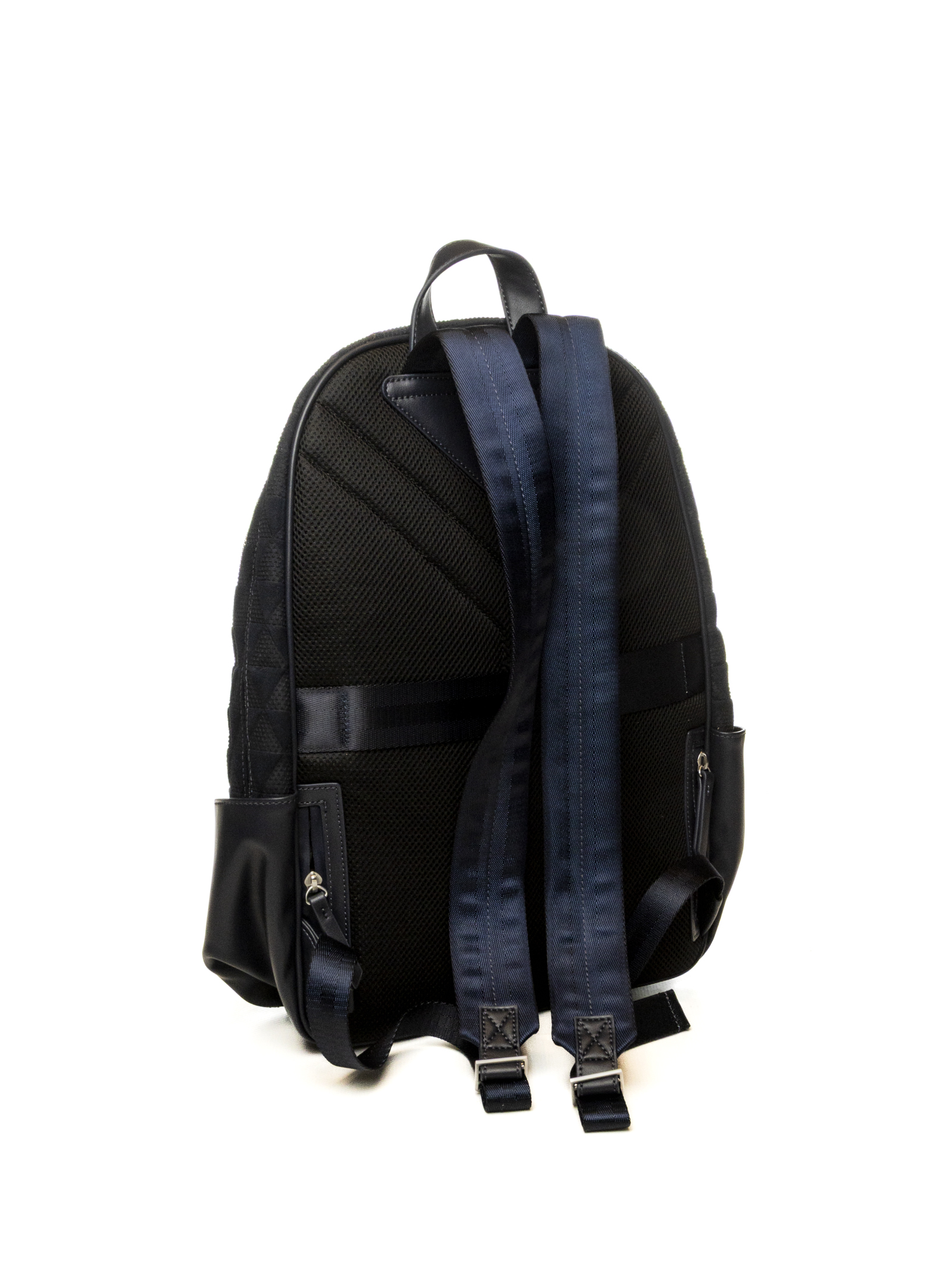 Caratteristiche: Texture geometrica a triangoli, schienale in rete, scomparto per laptop, fascia per trolley