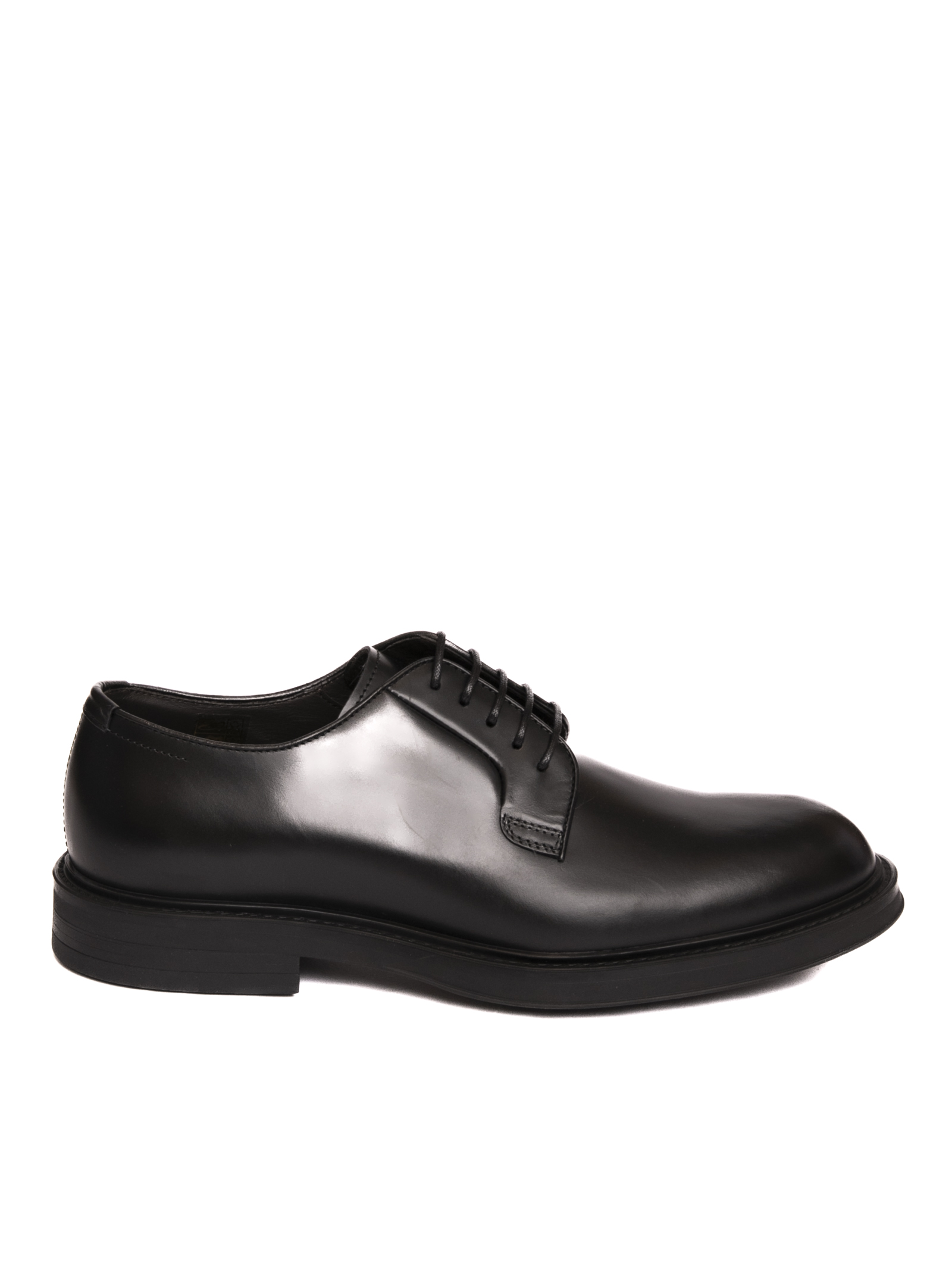 Derby in pelle. Chiusura con lacci. Interno in pelle. Fondo in gomma. Made in Italy