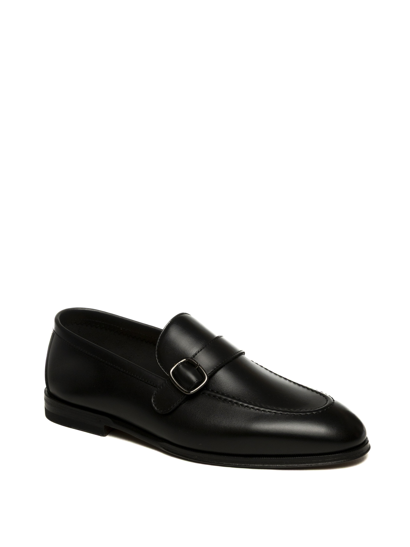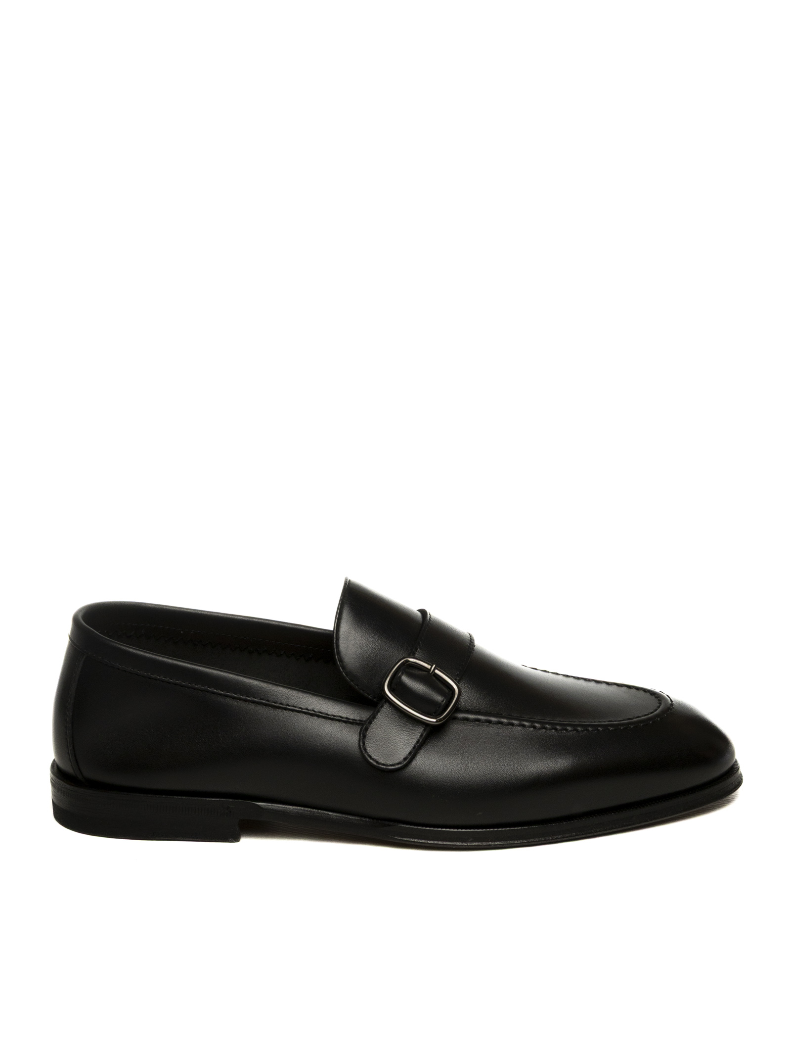 Il mocassino modello 'Monk Strap Loafer' di Henderson, rappresenta una raffinata evoluzione del classico mocassino, coniugando l'artigianalità calzaturiera italiana a un dettaglio di design distintivo. Realizzato in pregiata pelle di vitello 'Calf' nera, questo modello si caratterizza per l'elegante cinturino trasversale con fibbia metallica laterale, che dona un tocco contemporaneo e sofisticato alla silhouette tradizionale. La costruzione artigianale assicura una calzata avvolgente e una flessibilità superiore, mentre la pulizia delle linee e la qualità del pellame ne esaltano l'estetica di lusso discreto. Una calzatura versatile e di grande carattere, ideale per chi desidera distinguersi con eleganza sia in contesti formali che in occasioni casual-chic.