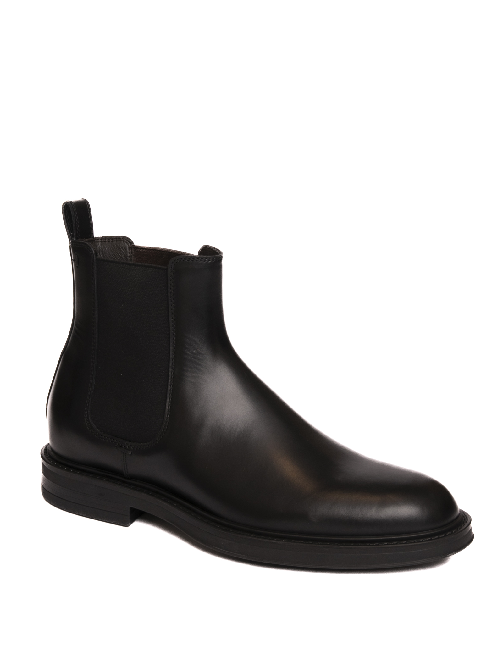 Stivaletto chelsea in pelle. Elastici laterali. Interno in pelle. Tirantino posteriore. Fondo in gomma.