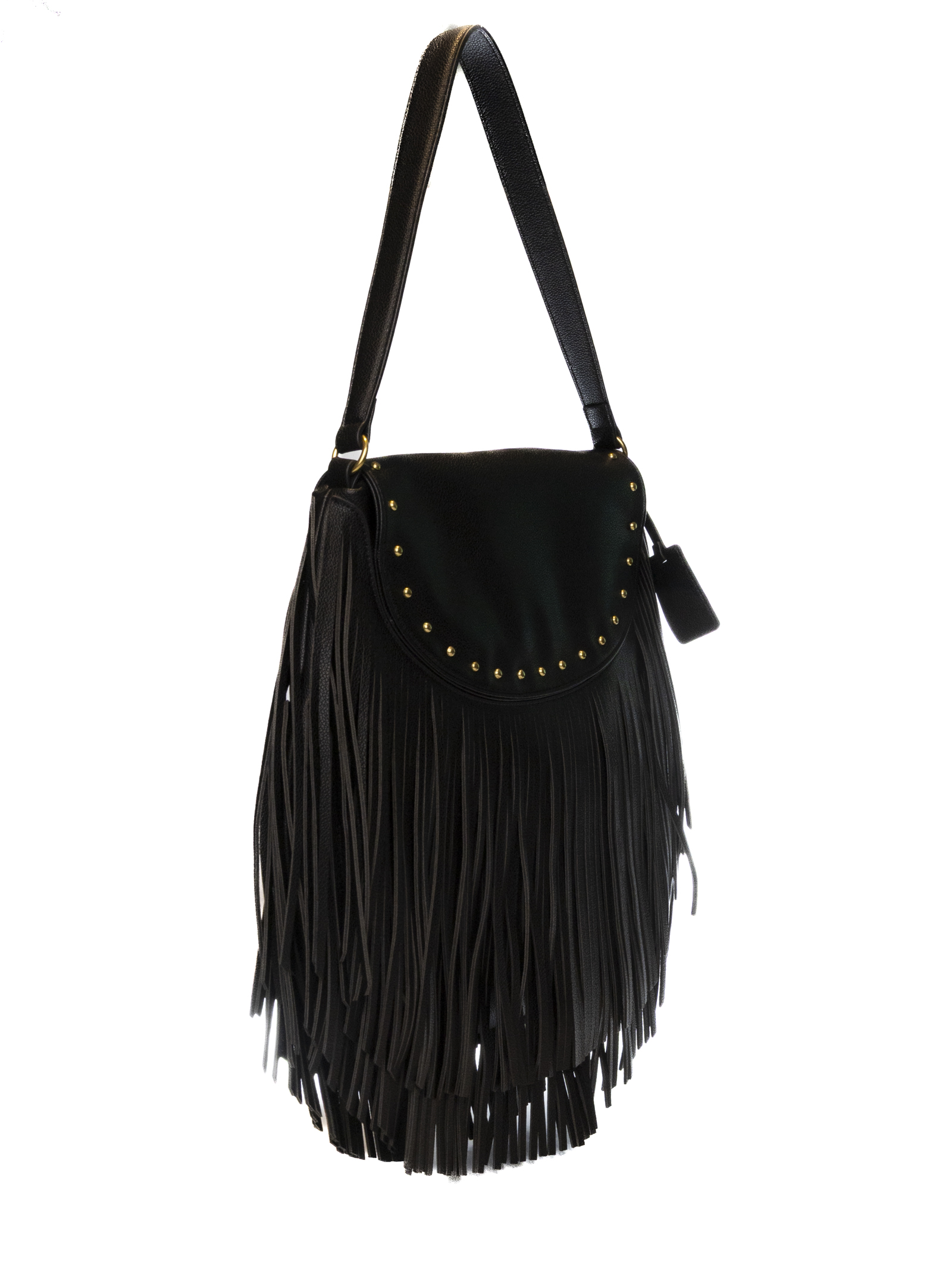 La borsa a spalla nera con frange firmata Le Pandorine è l' accessorio perfetto per aggiungere un tocco grintoso e glamour al tuo look.