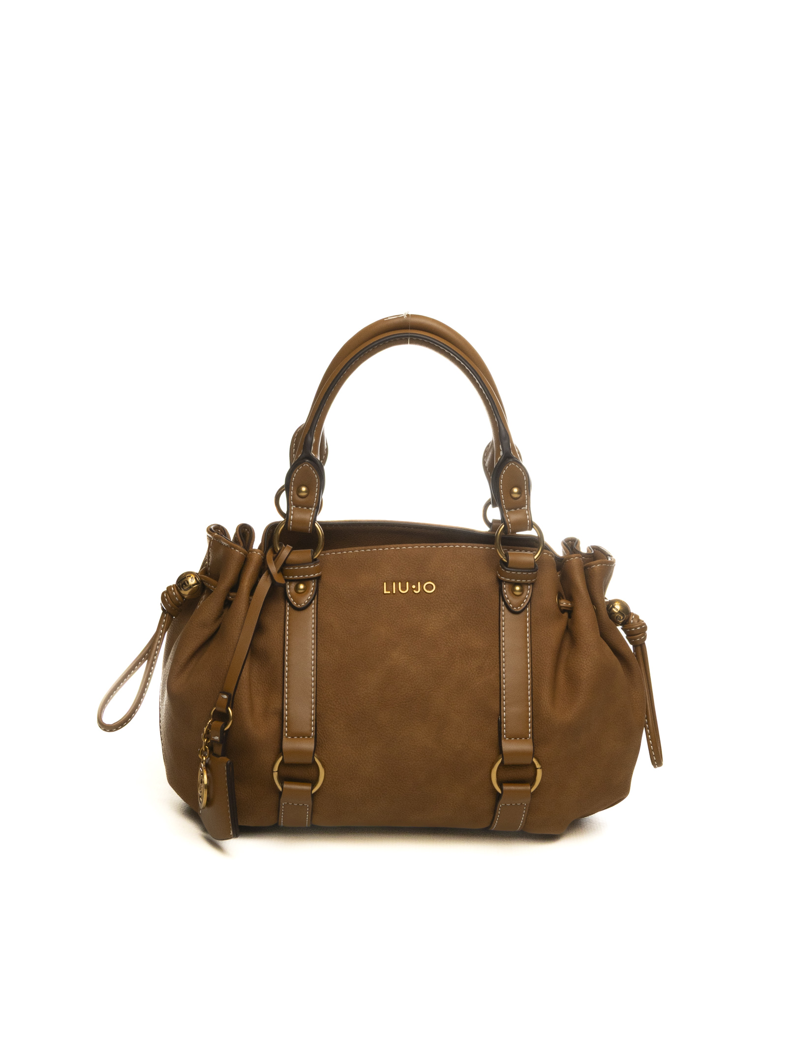 Realizzata in una calda tonalità Cammello, questa borsa è impreziosita da eleganti inserti verticali e hardware in metallo dorato dall'effetto brunito, che le conferiscono un tocco vintage e sofisticato. Il logo lettering metallico sul fronte e il ricercato charm logato a medaglione completano l'accessorio, sottolineando l'identità glamour e l'attenzione ai dettagli tipica di Liu Jo.