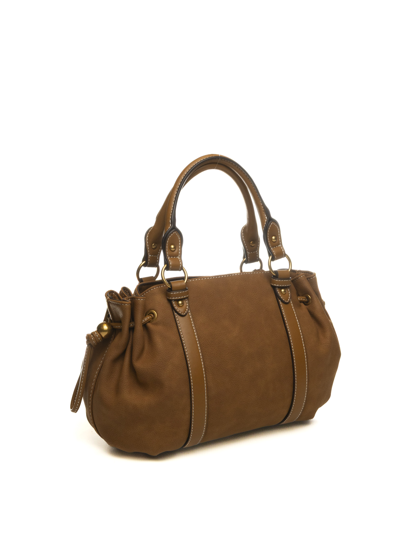 Questa borsa a mano Liu Jo della linea Ginesa è la quintessenza dello stile urban-chic, unendo un design morbido a dettagli strutturati di grande carattere. Caratterizzata da una silhouette a bauletto dai volumi generosi, l'accessorio si distingue per i raffinati arricciamenti laterali regolabili tramite coulisse con terminali metallici, che permettono di modularne la capienza e l'estetica.