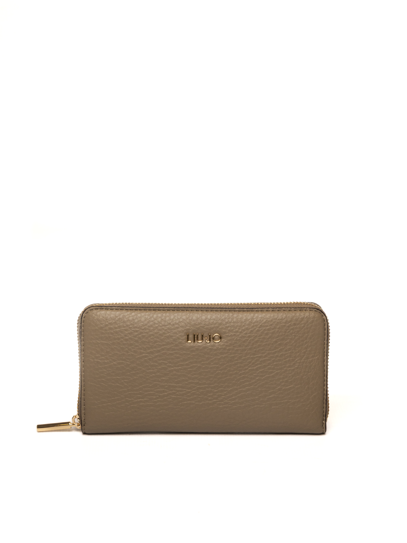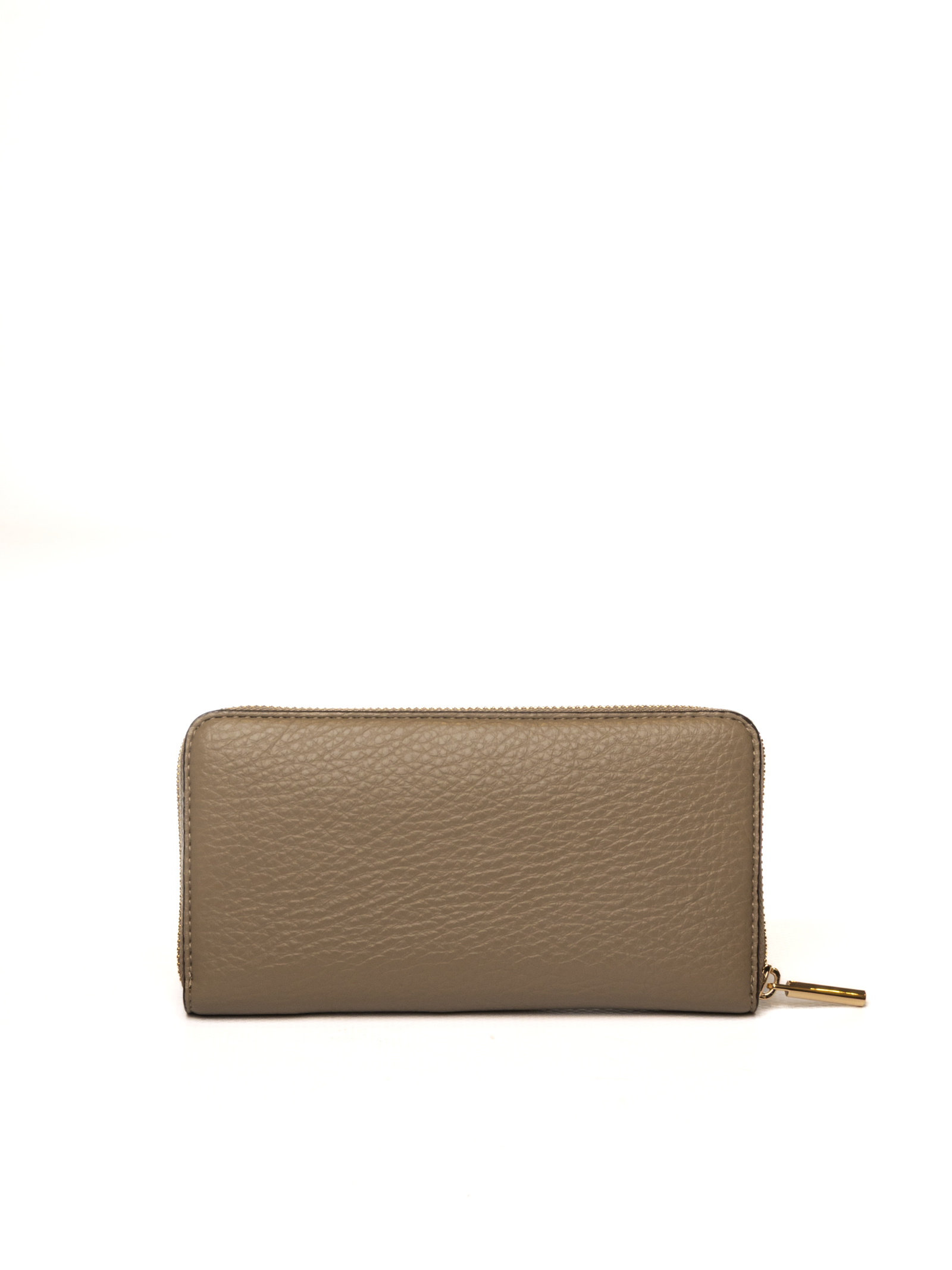 Portafoglio in ecopelle effetto bottalato. Chiusura con zip. Scomparto per banconote. Scomparto per tessere e carte. Scomparto per monete con zip. Logo in metallo frontale.