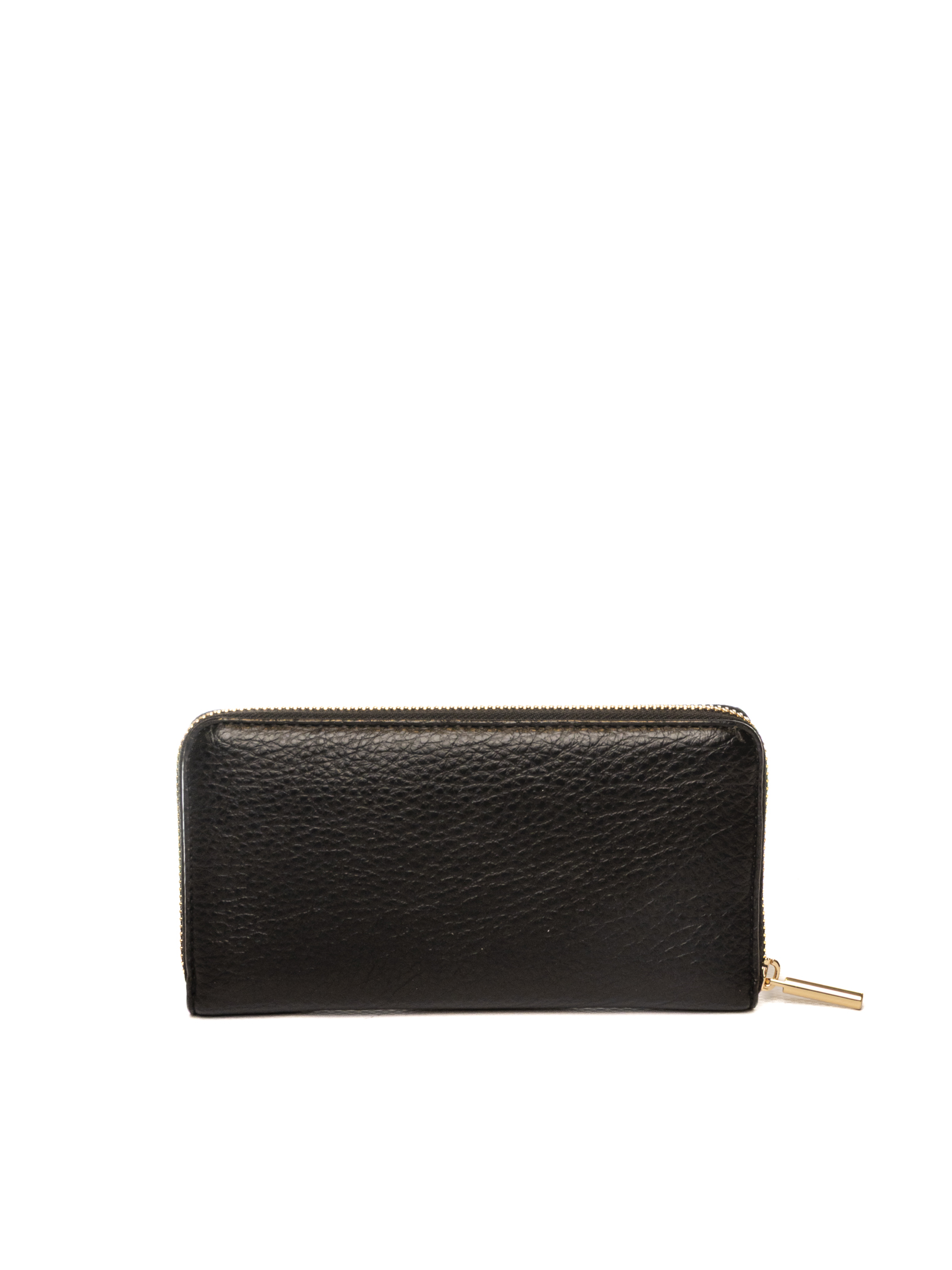 Portafoglio in ecopelle effetto bottalato. Chiusura con zip. Scomparto per banconote. Scomparto per tessere e carte. Scomparto per monete con zip. Logo in metallo frontale.