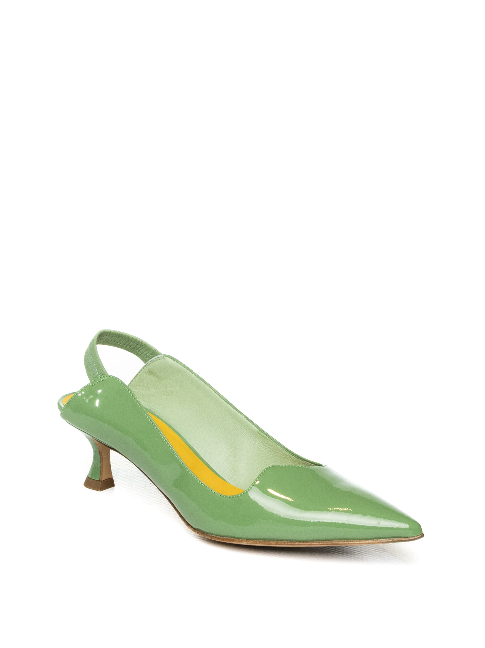 Chanel in morbida pelle verniciata. Fodera in pelle. Tacco 40mm. Lavorazione a sacchetto. Extra confort. Made in Italy