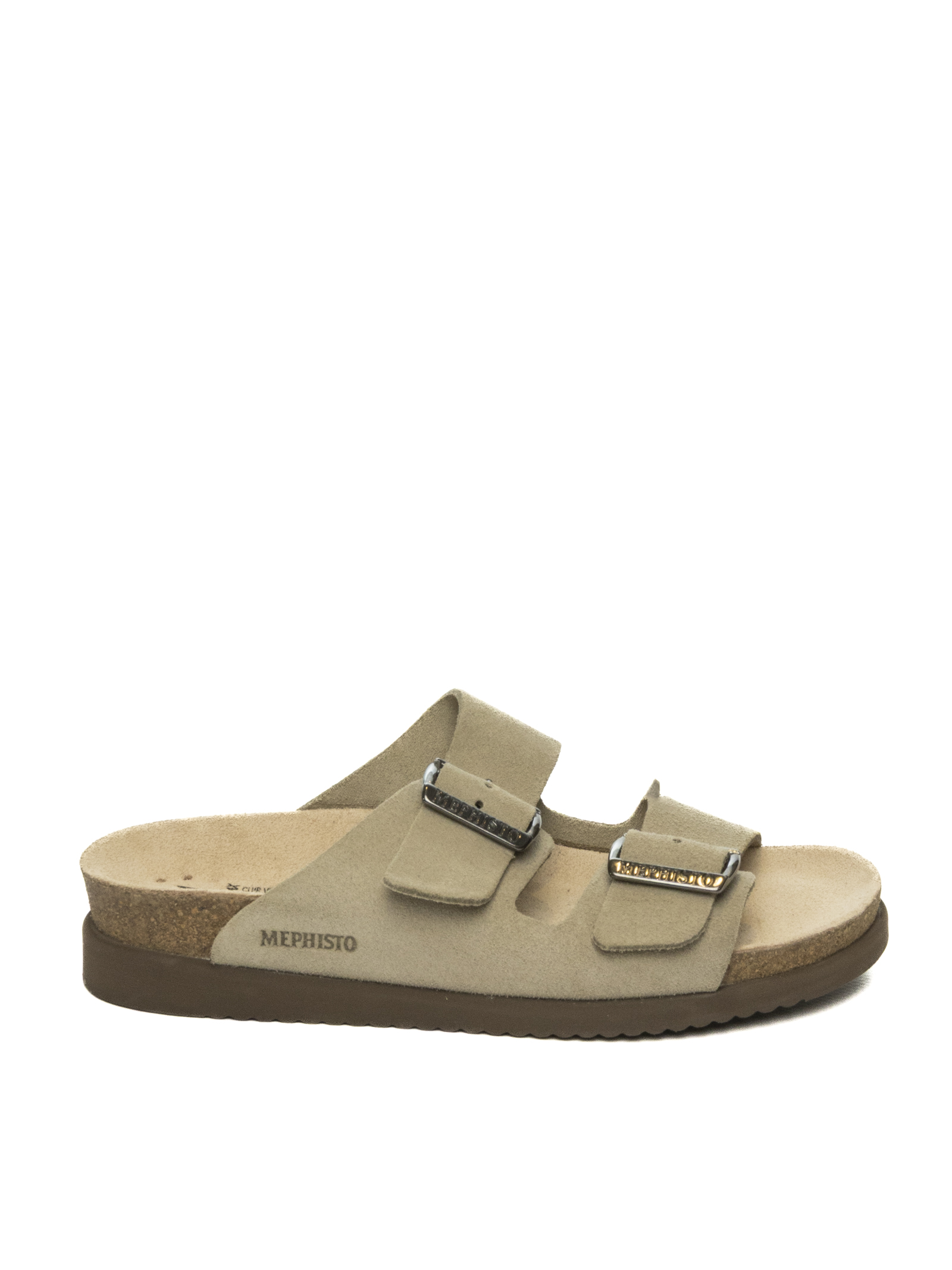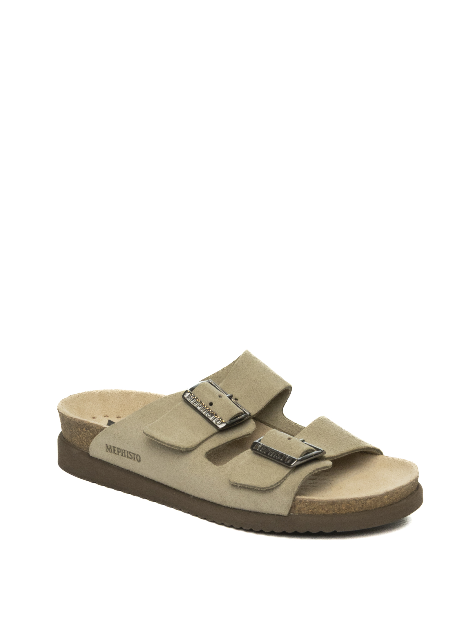Sandalo doppia fibbia in camoscio. Fasce con fibbia regolabile. Plantare anatomico con tecnologia Soft Air®. Suola in gomma