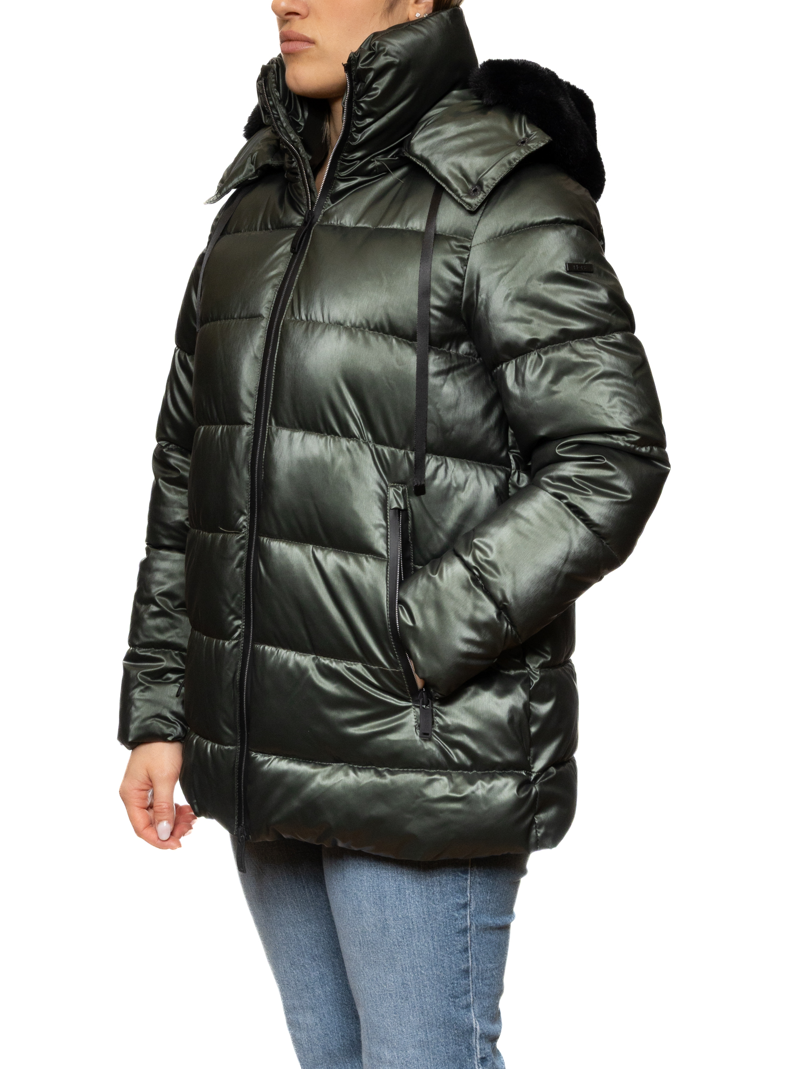 L' imbottitura termica garantisce un calore ottimale, mentre il cappuccio bordato in morbida eco-pelliccia aggiunge un tocco femminile e glamour.