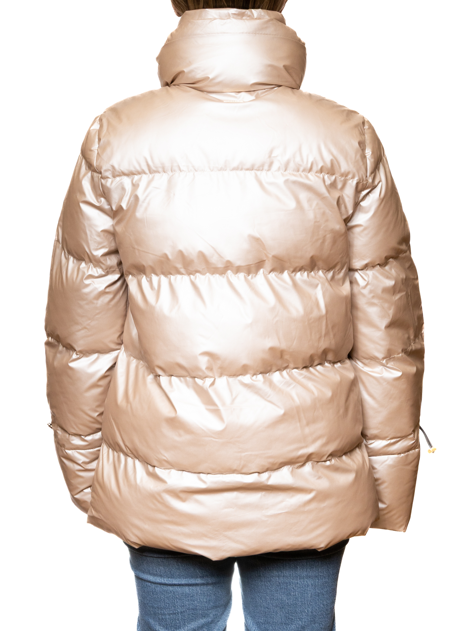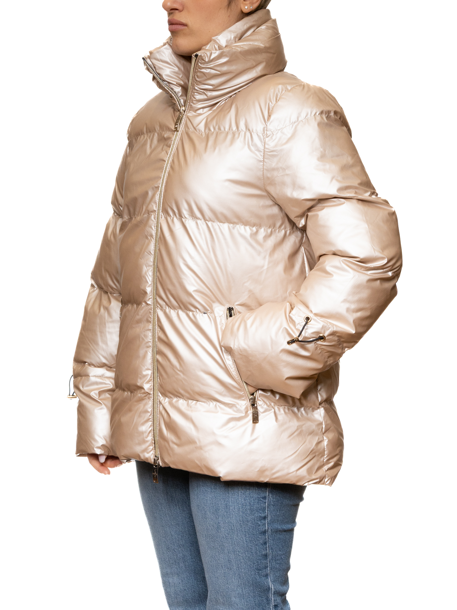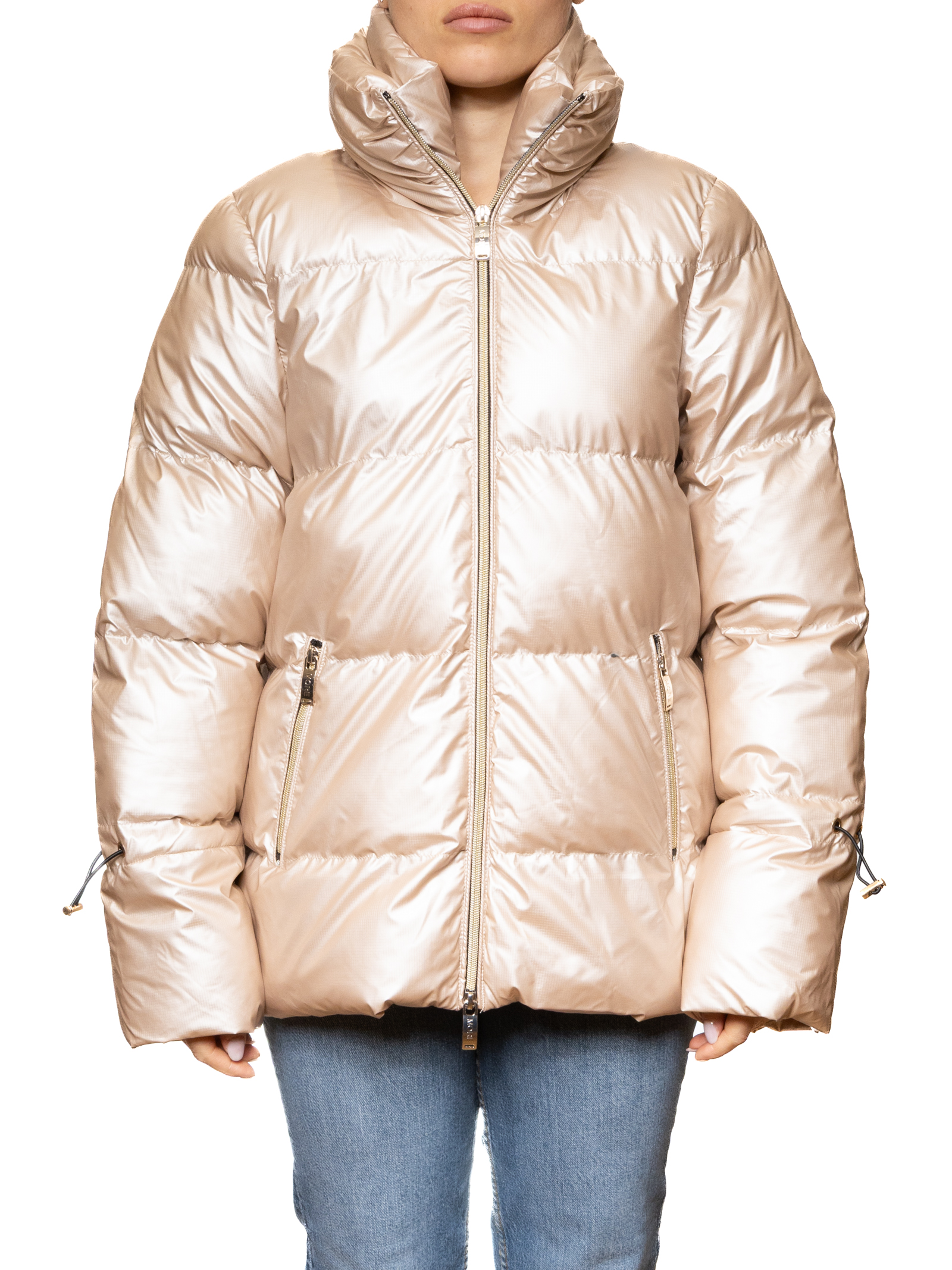 Il piumino donna MORE in colore champagne unisce eleganza, comfort e funzionalità in un design moderno.