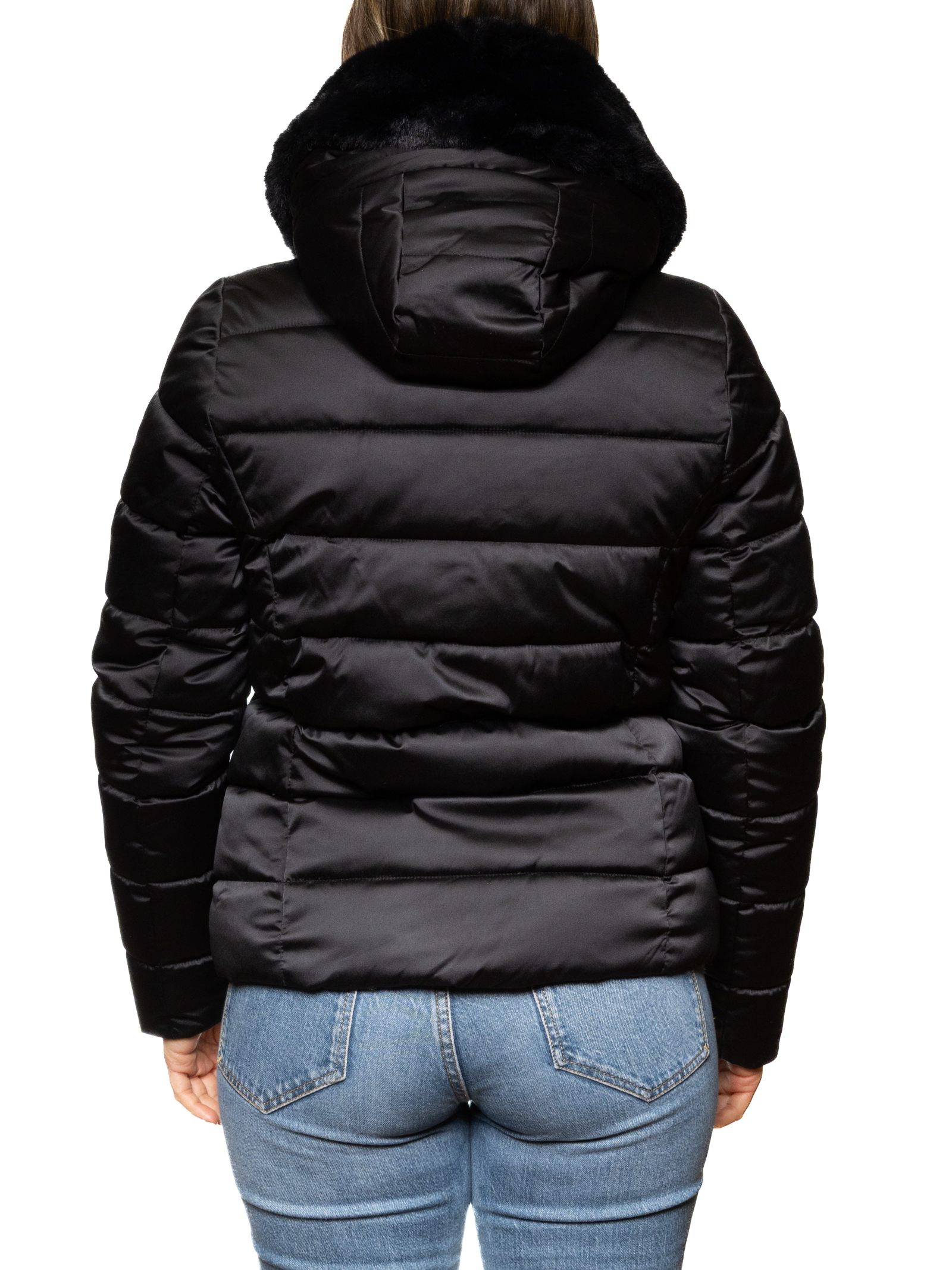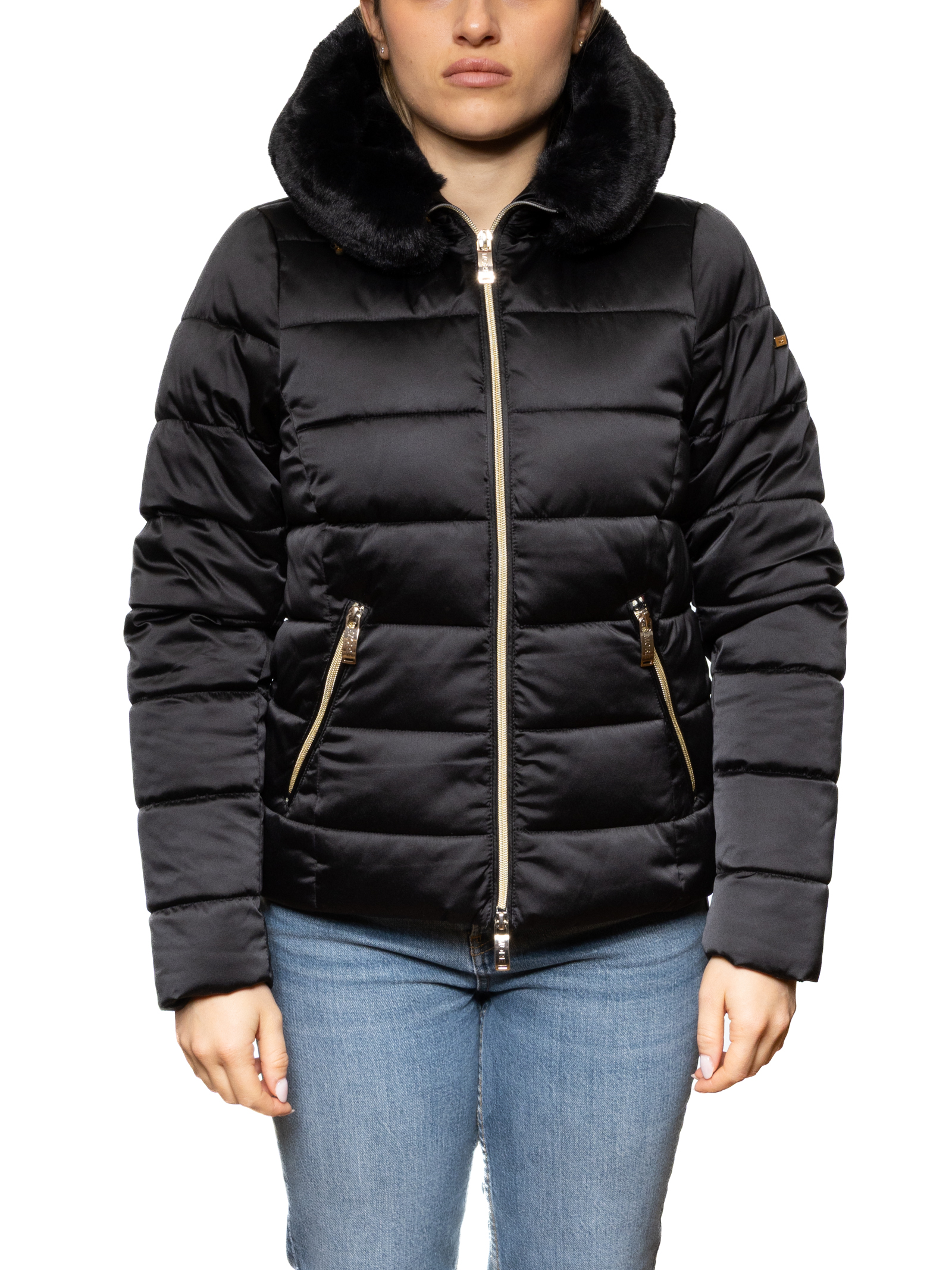 Il piumino donna MORE in colore nero è la scelta ideale per chi desidera un look sofisticato senza rinunciare al comfort.
