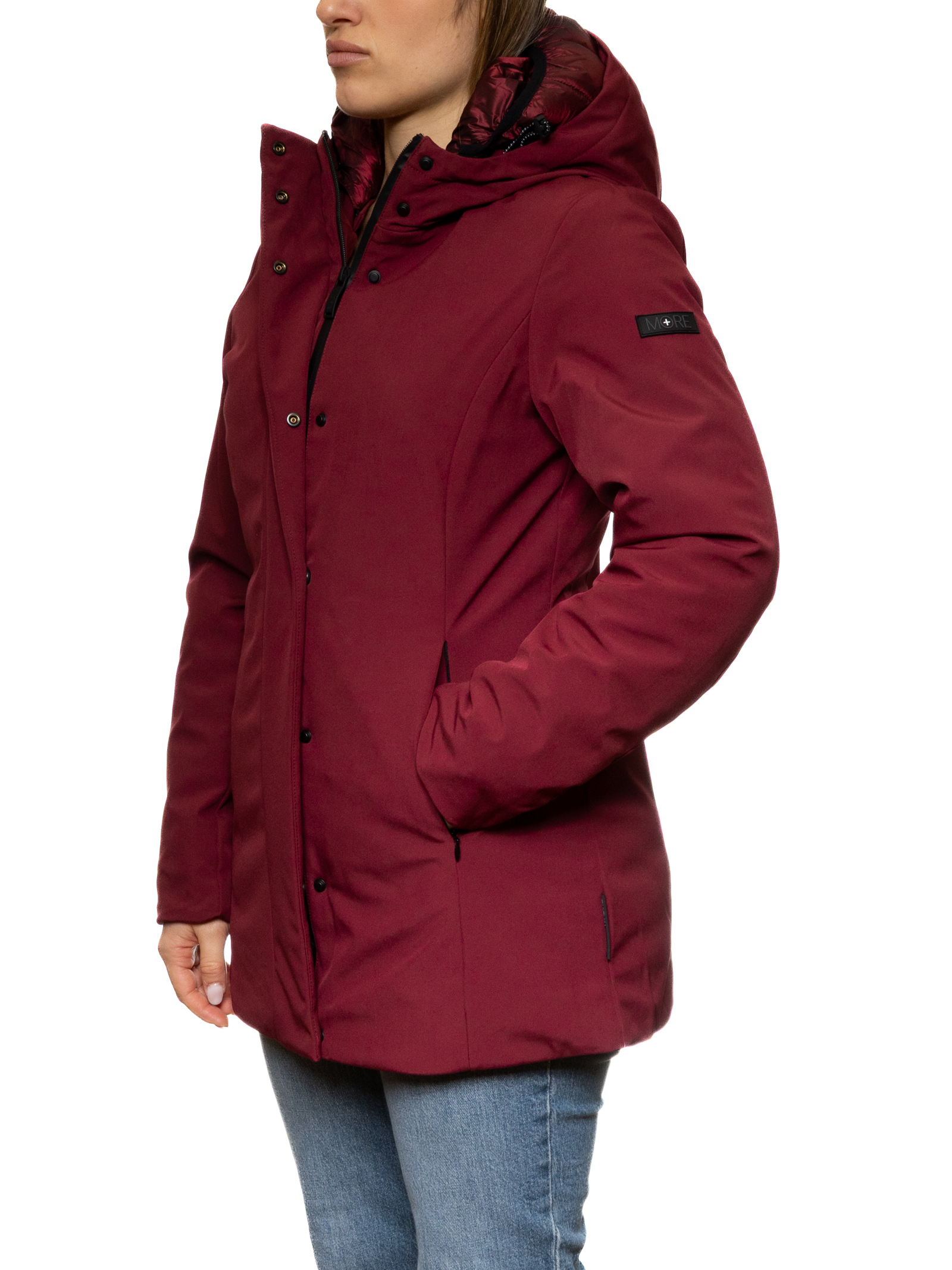 Il piumino donna MORE in colore magenta unisce eleganza e funzionalità in un capo essenziale e raffinato.