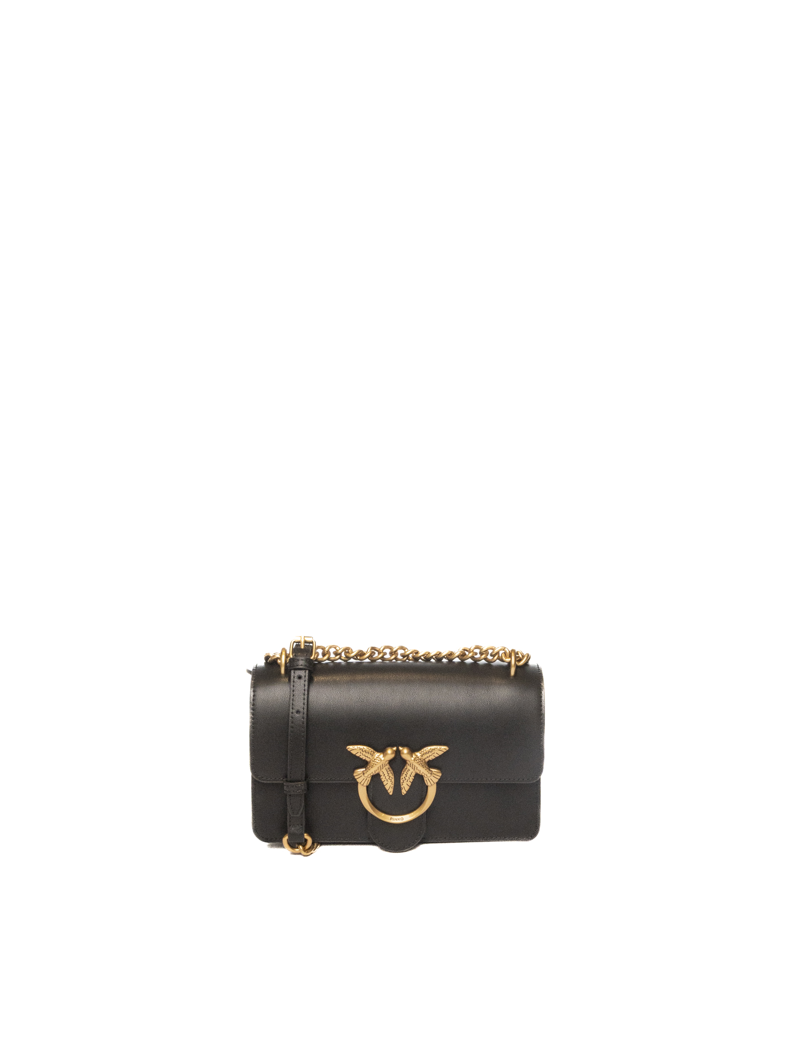 La borsa a tracolla Pinko Love Bag in pelle nero/oro è l'emblema di un'eleganza moderna con un tocco romantico.