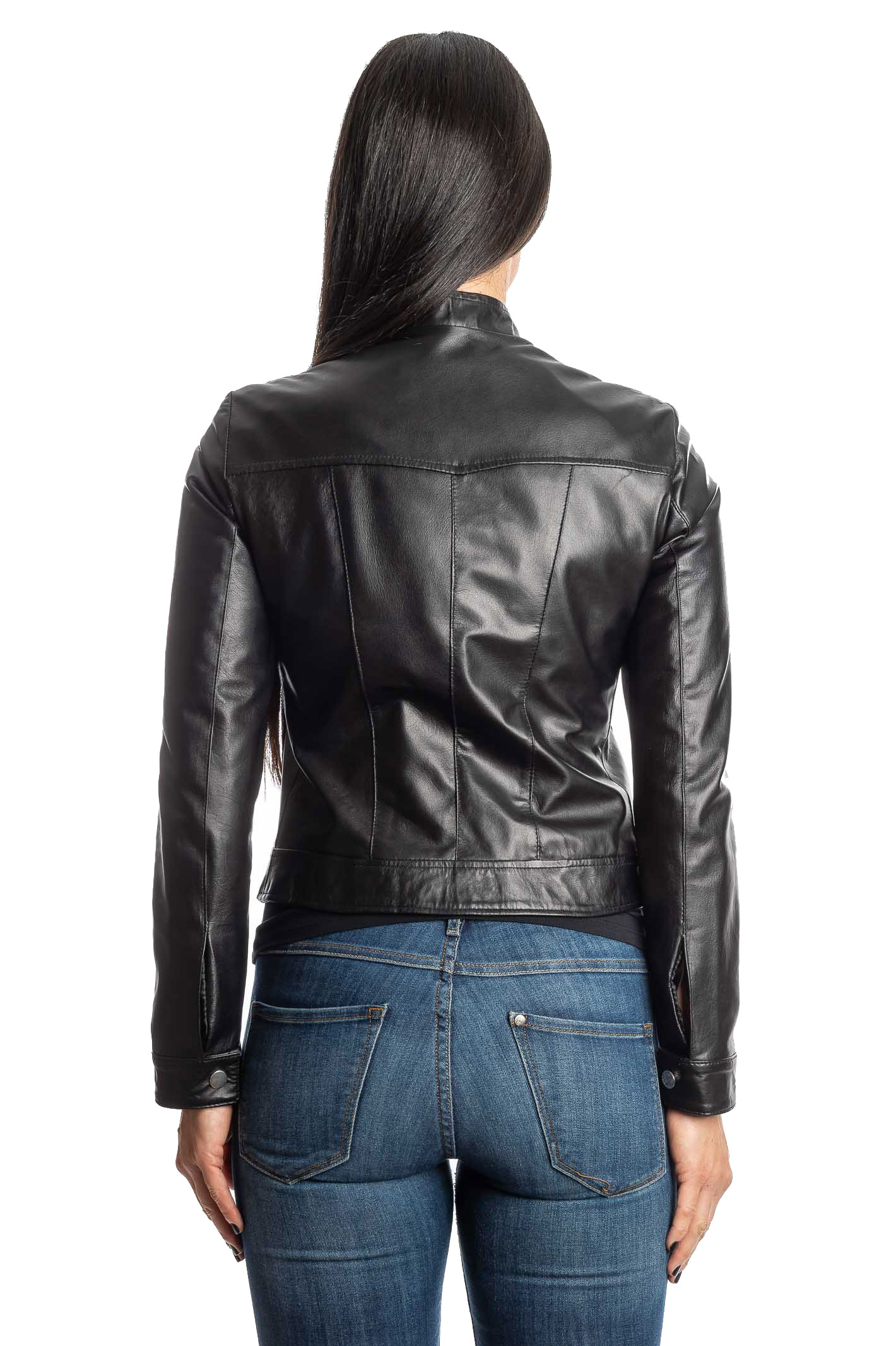 Giacca in nappa. Collo pistagna con bottone. Tasche zip. Made in Italy.