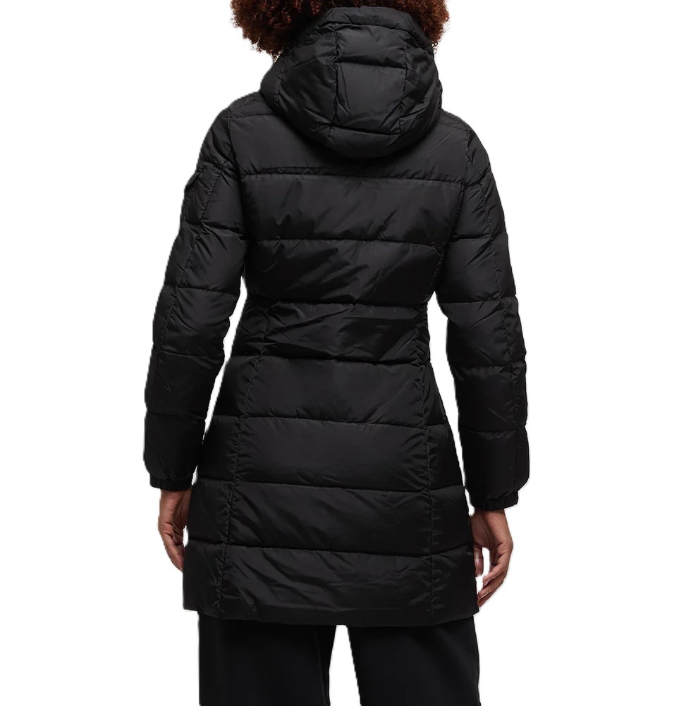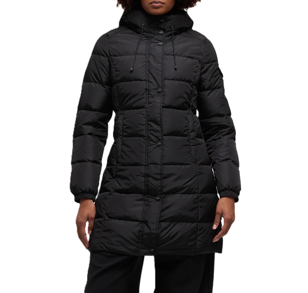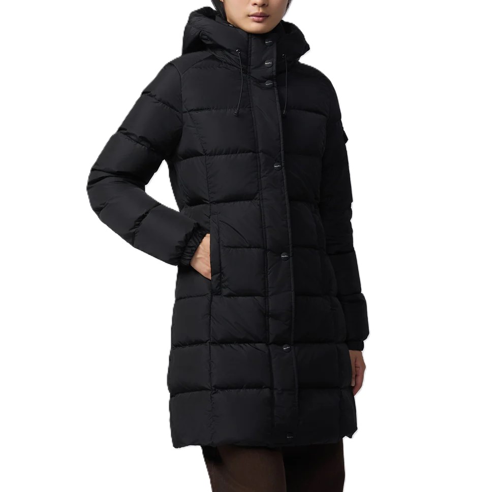 Piumino lungo da donna dal design elegante e avvolgente, perfetto per affrontare le temperature più fredde con stile. L' imbottitura calda e soffice è distribuita in ampie trapuntature orizzontali, garantendo massimo comfort termico e una silhouette femminile e slanciata.