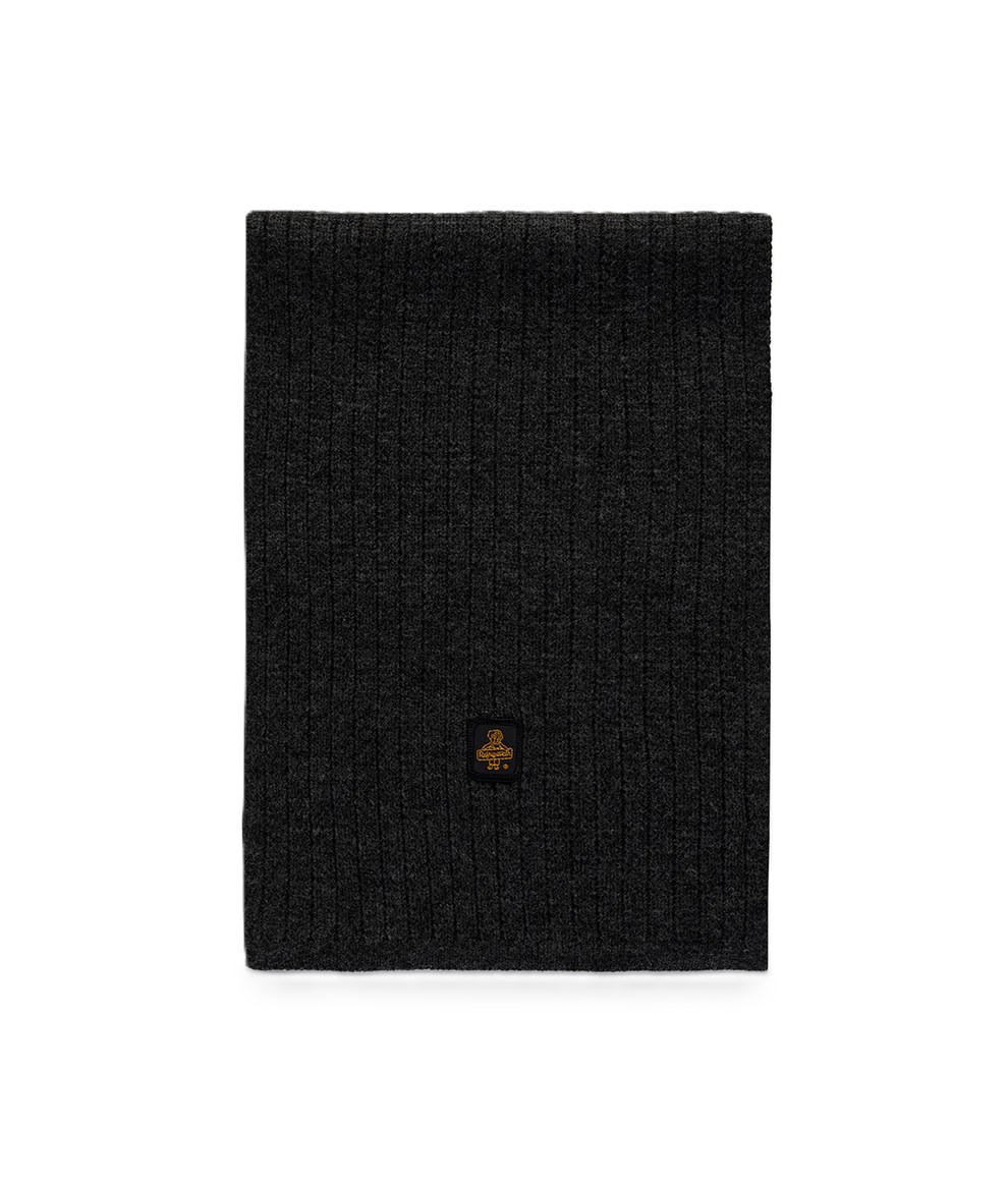 La sciarpa grigia antracite in maglia a coste con logo frontale è l' accessorio indispensabile per proteggersi dal freddo con stile.