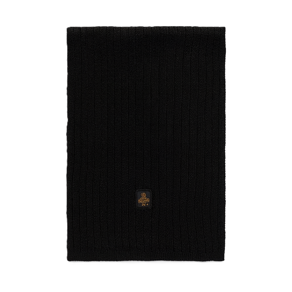 La sciarpa nera in maglia a coste con logo frontale è l' accessorio indispensabile per proteggersi dal freddo con stile.